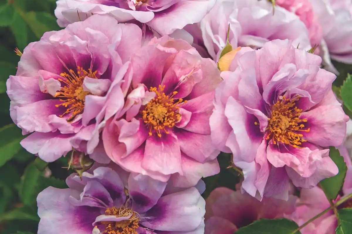 - Рожеві з бордовим різної насиченості кольору "Алісар Принцес оф Фонісія" ("Alissar Princess of Phoenicia") (120,10), "Чуделайт" ("Chewdelight") (100,5), "Сії Ю ін Роуз" ("See You in Rose" Лимонад (Eyeconic Pink Lemonade) (130,7), Персіан Айз (Persian Eyes) (100,5), Світ Бейбілон Айз (Sweet Babylon Eyes) (70,6).