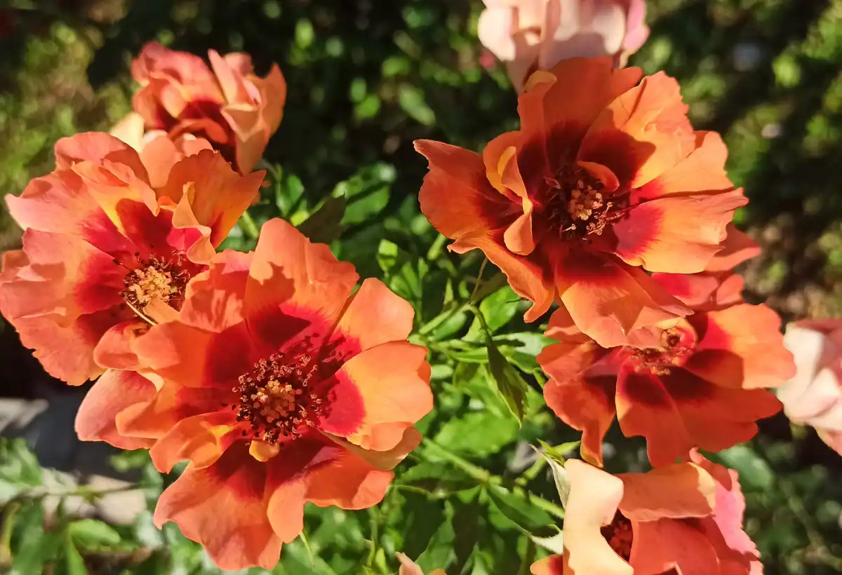 Жовті, рожеві, персикові, абрикосові та з лавандовими відтінками квітки у міру відцвітання змінюють забарвлення, і кущики хизуються різноманітними відтінками окутастих квіточок. Щоб не зіпсувати загальне враження какофонією кольору, як супутники краще підбирати рослини рівного спокійного тону. Або однотонні троянди близької колористики.