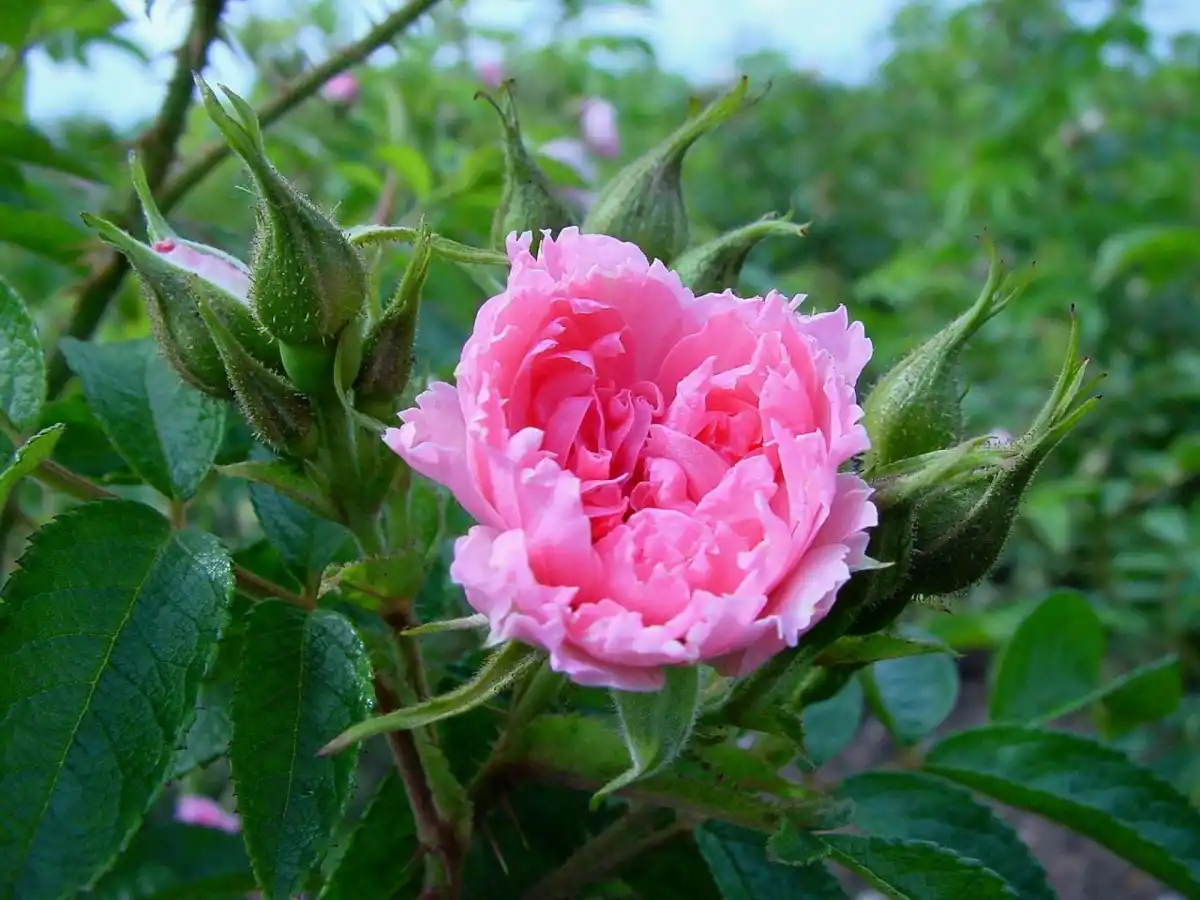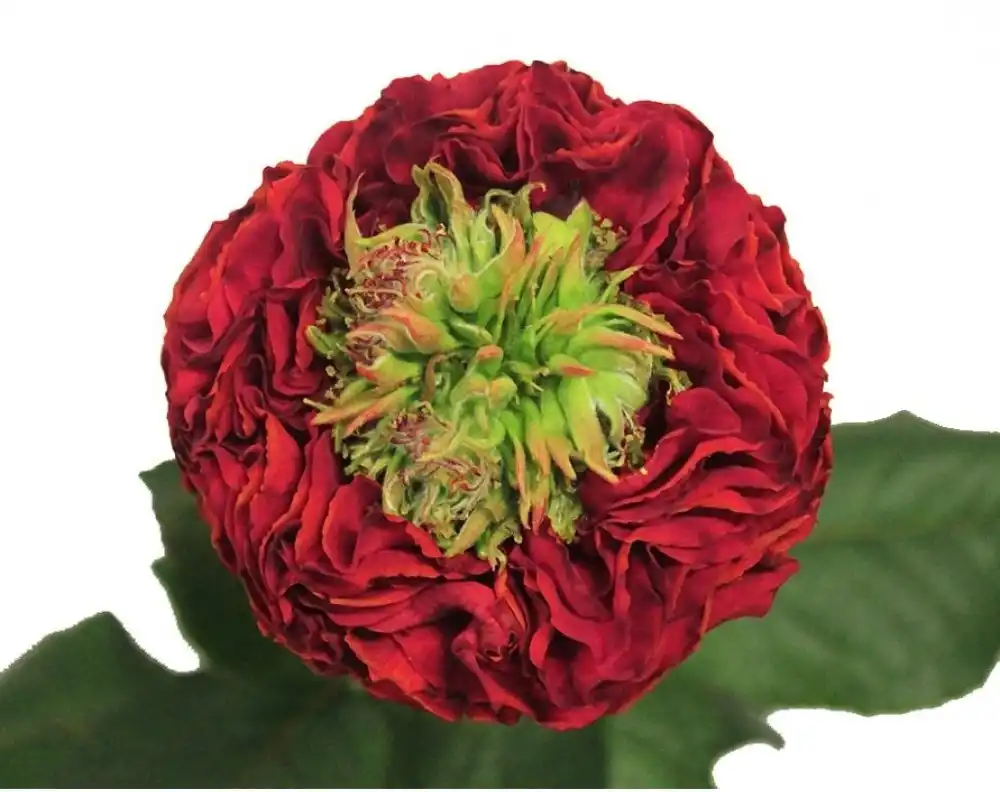 Квітки сорту бенгальської троянди «Вірдіфлора» («Viridiflora») — взагалі безліч чашолистків, що розрослися, яких утворюють якусь структуру зелено-їжачкового вигляду.