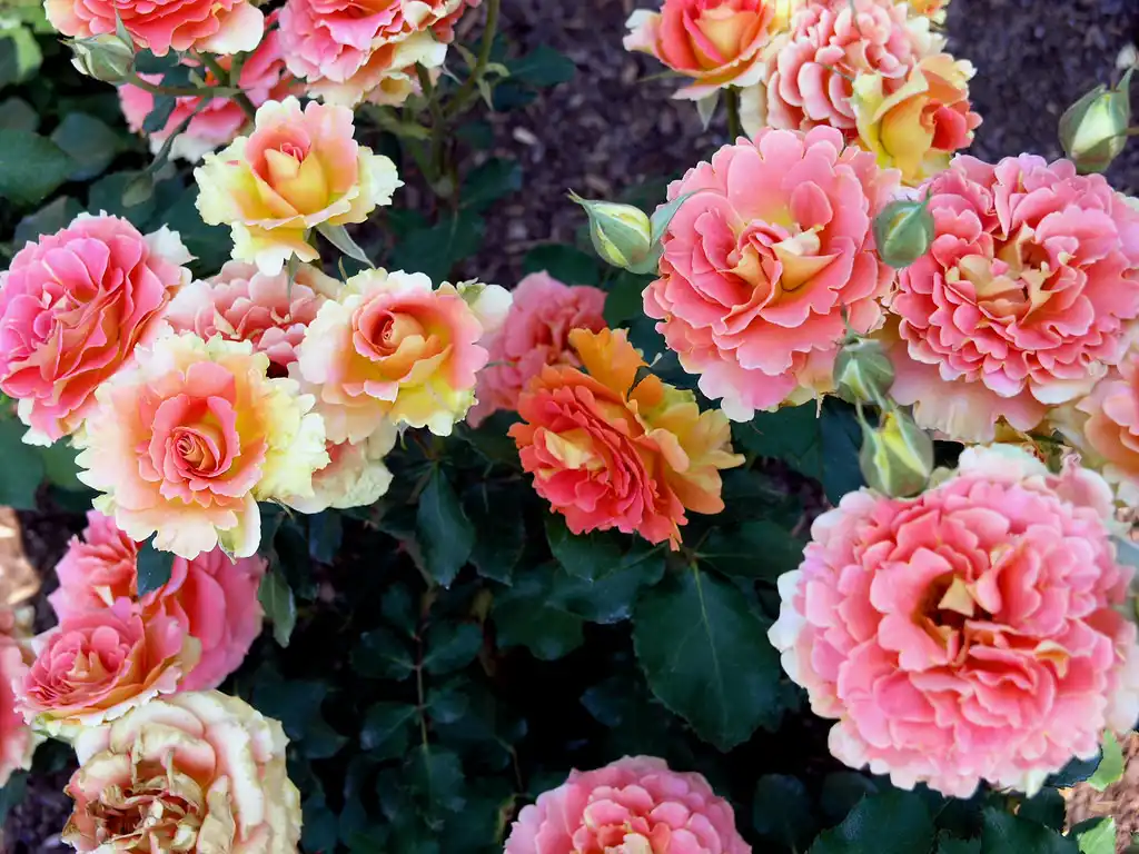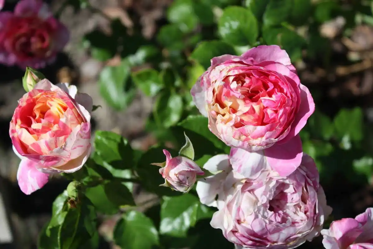 Світло-рожево-бузкова флорибунда «Кутюр Троянди Тілія» ('Couture Rose Tilia') при аналогічній махровості зі своїми оборочками виглядає досить кокетливо. Чайно-гібридна «Софі Рочаз» (Sophie Rochas) рожева, повністю махрова і дуже ароматна. Зрізувальна «Фрі Спіріт» («Free Spirit») зі слабким ароматом, в жовто-рожево-персиковому забарвленні, хамелеон.