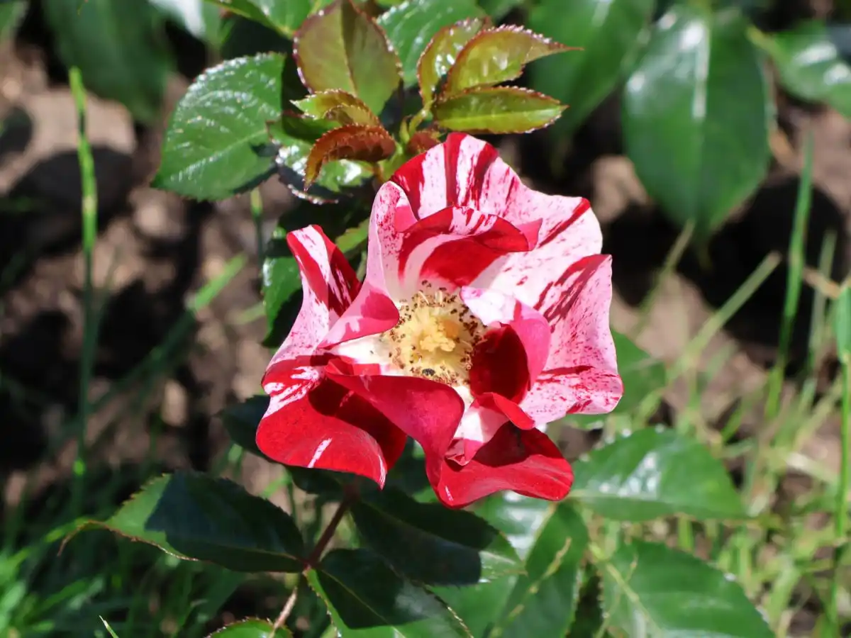 Квітки троянд досить старої сортосерії «Грутендорст» («Grootendorst») хизуються «гвоздичними» зубчастими пелюстками.