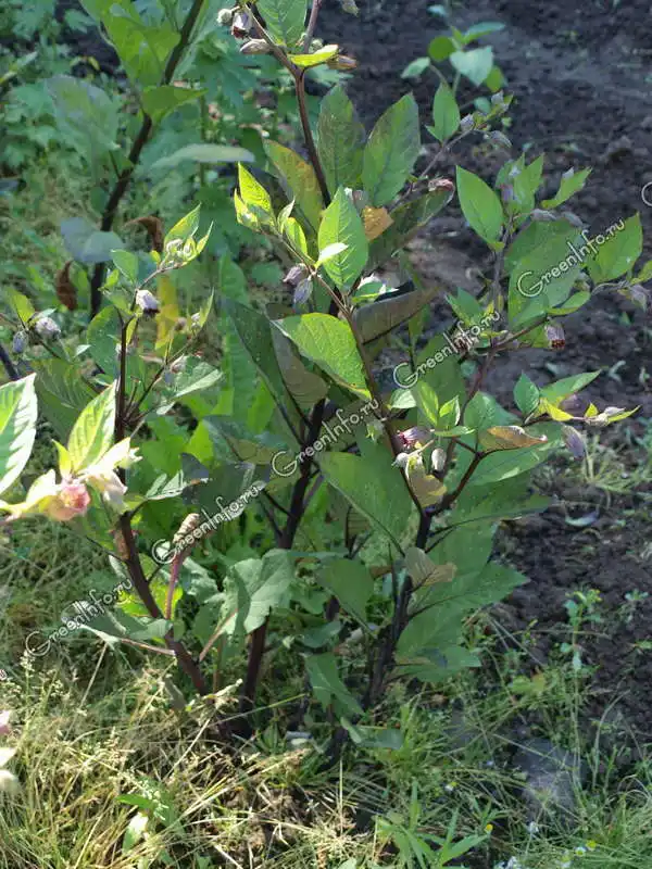 ![]() | Латинська назва Atropa beladonna Сімейство Пасльонові (Solanaceae) ![]() |
