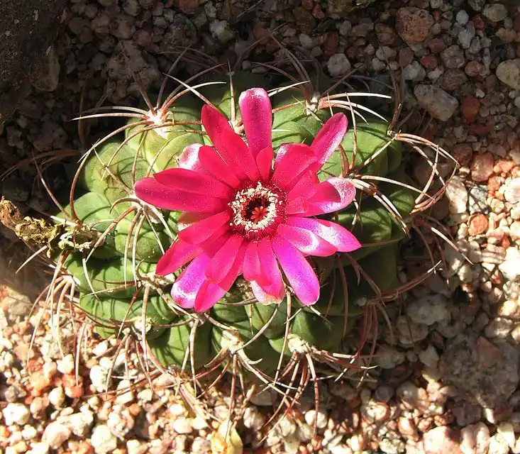 Гімнокаліціум - кулястий кактус, родом з Південної Америки, назва якого походить від латинських слів: "gymnos" - "голий" і "calycium" - "чашечка". Квіткові трубки цієї рослини, на відміну інших кактусів, голі (без волосків і щетинок), покриті гладкими лусочками. Утворюються із ареол на верхівці стебла. Як доглядати за гімнокаліціумом, читайте у нашій статті.