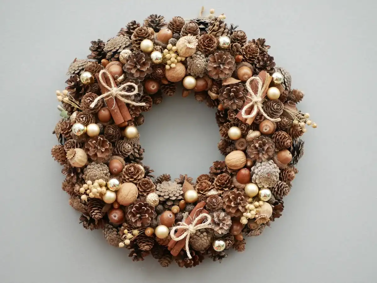Вінок із шишок виглядає дуже ефектно і додає особливий затишок в інтер'єр будинку. Є в цьому щось незрозуміло атмосферне. Шишки не обов'язково мають бути однаковими — вони можуть бути різних видів і форм, адже найголовніше в процесі створення такого елемента декору — це збирати композицію з душею, тільки тоді вийде ідеально!