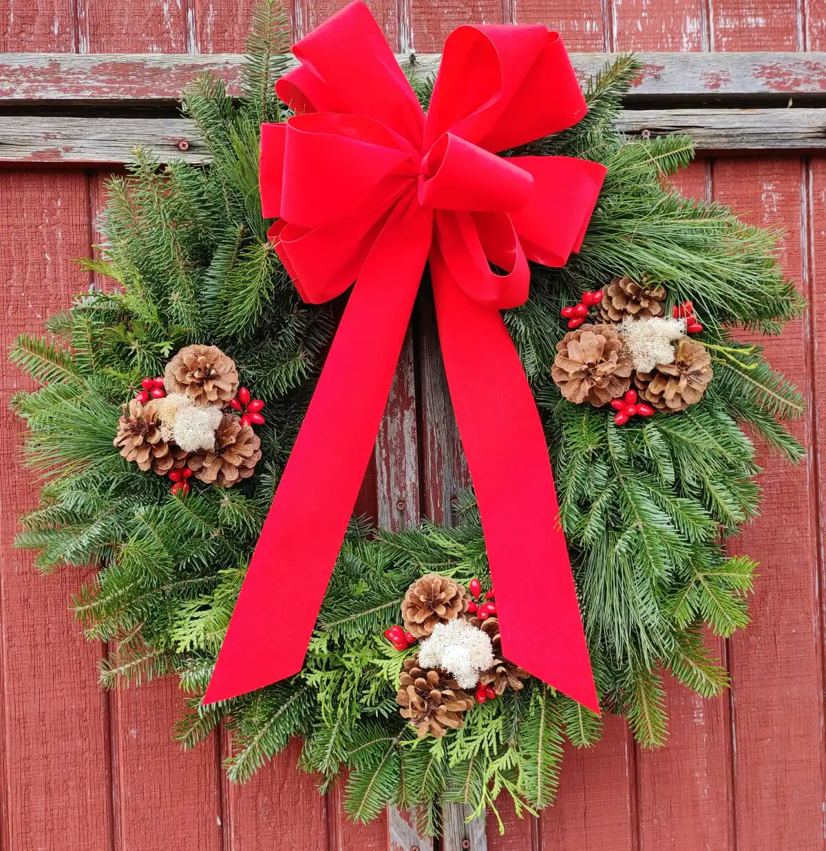 Мабуть, класичний варіант новорічного вінка – це вінок із ялинових гілок. До речі, вони можуть бути як живими, так і штучними. Ви можете створити мінімальний елемент декору, який доповнює атмосферу новорічного дива. А якщо вам мало просто зеленушечки, то розглянемо інші варіантики.