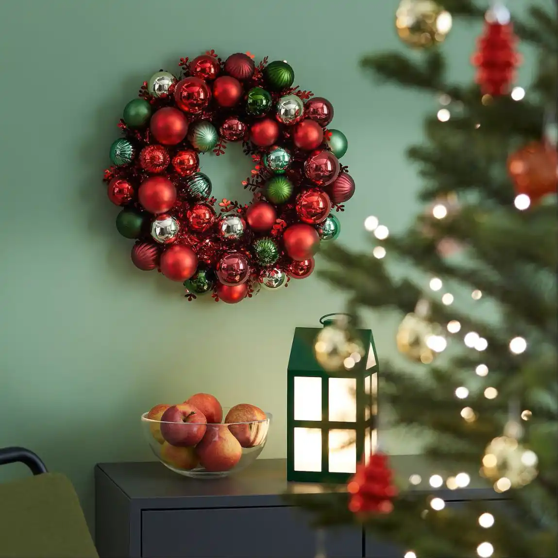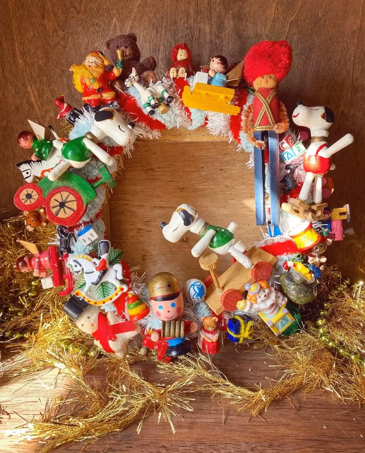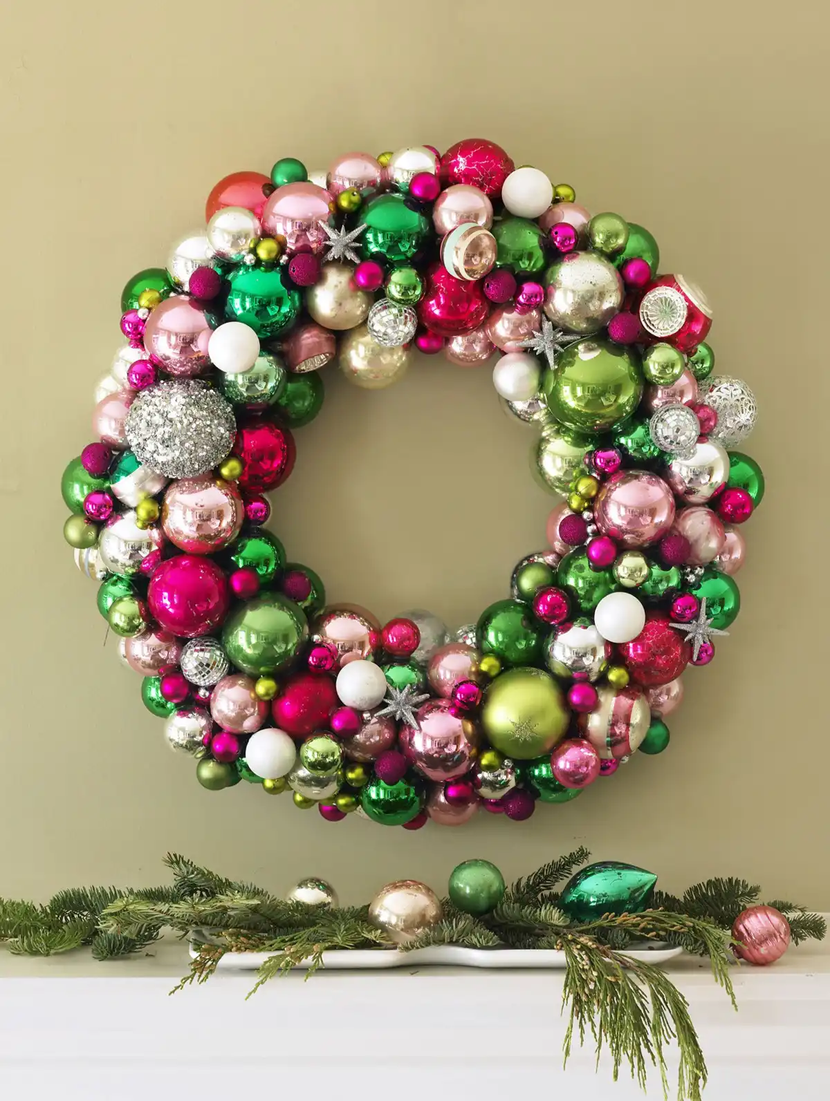 Якщо ви придбали занадто багато ялинкових іграшок і просто не розумієте, куди їх діти — зберіть вінок! Це можуть бути як стандартні ялинкові кулі, так і різні фігурки просто проявите трохи фантазії. Тож озброюйтеся клейовим пістолетом і вперед, створювати новорічний настрій!