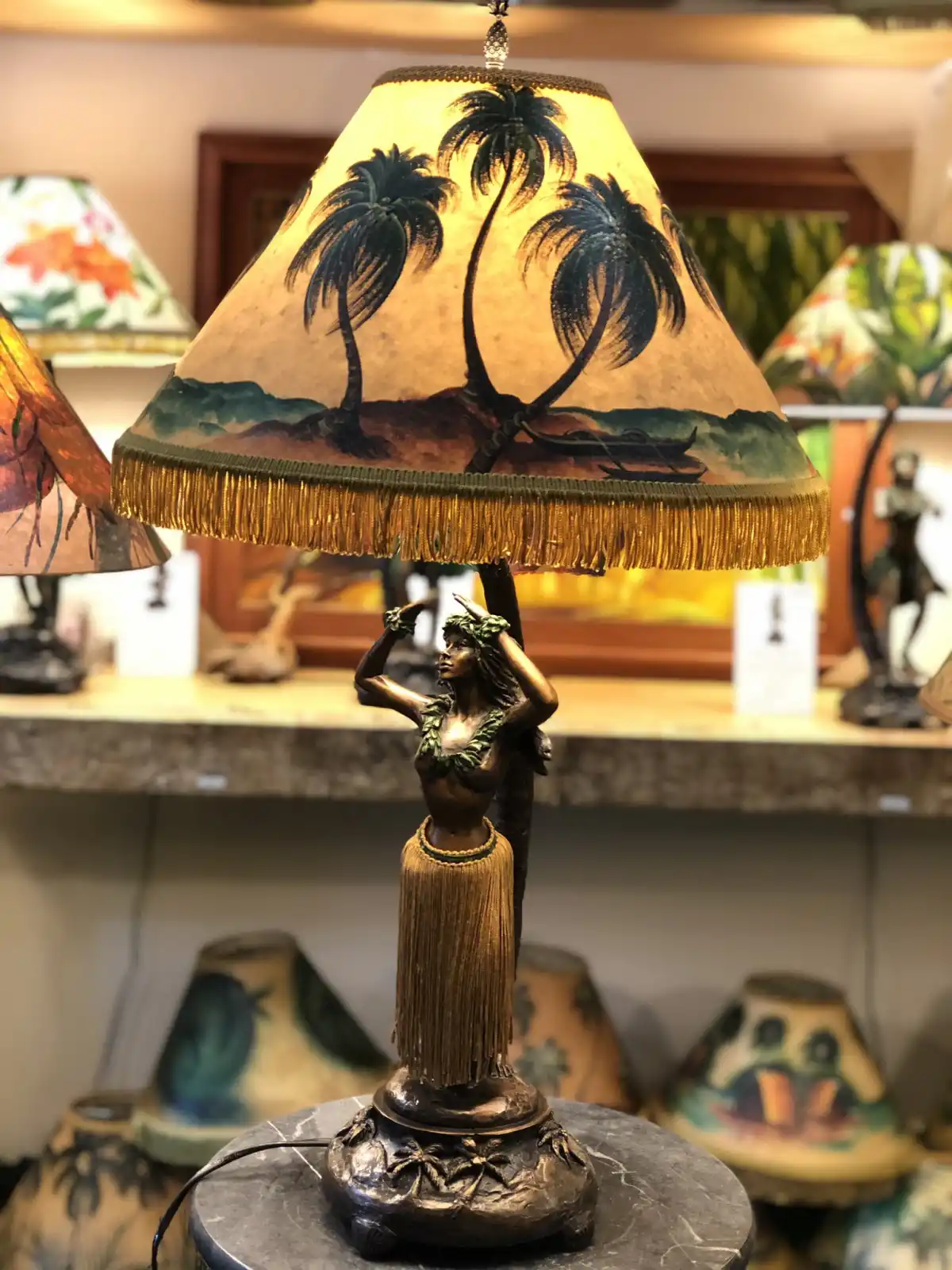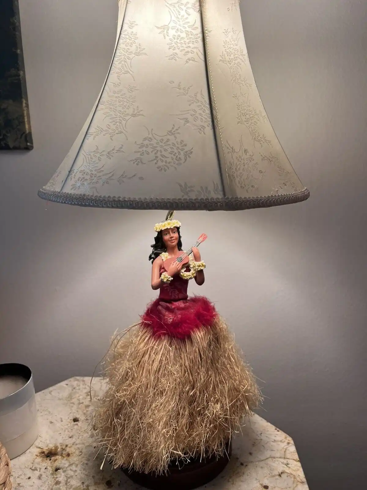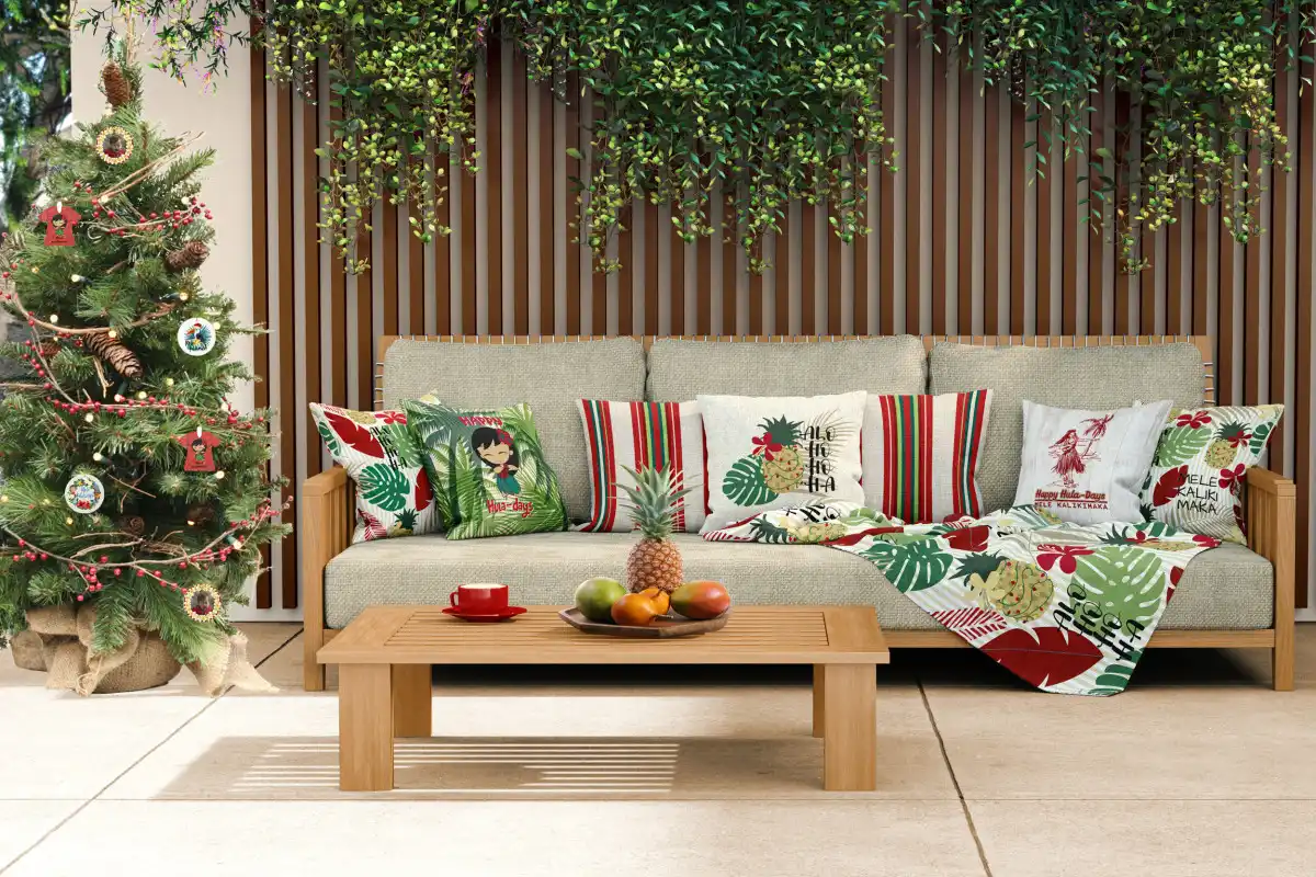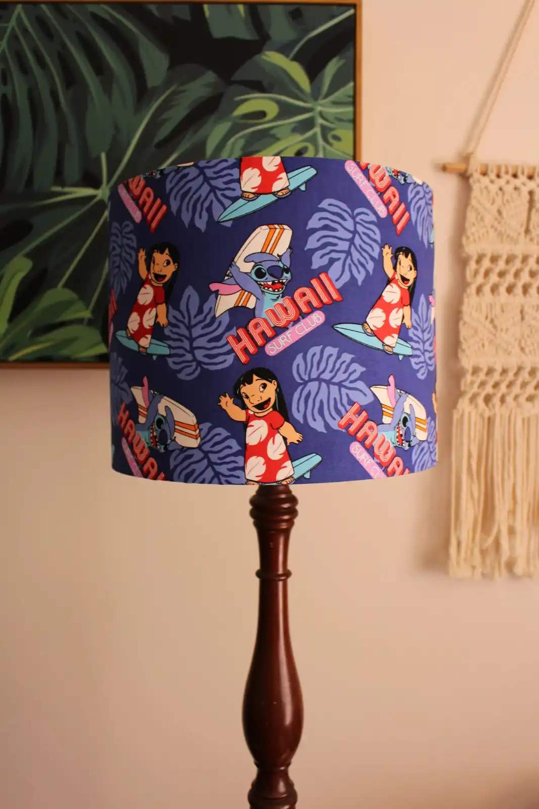 Цей елемент декору заслуговує на окрему увагу! Красиві настільні лампи з бахромою та фігуркою дівчини у традиційній гавайській манері – ідеальне доповнення до інтер'єру у гавайському стилі. До речі, можна урізноманітнити дитячу кімнату — для цього цілком підійде лампа з персонажами мультика «Ліло і Стіч», у мене цей мультфільм асоціюється саме з Гаваями. А у вас?