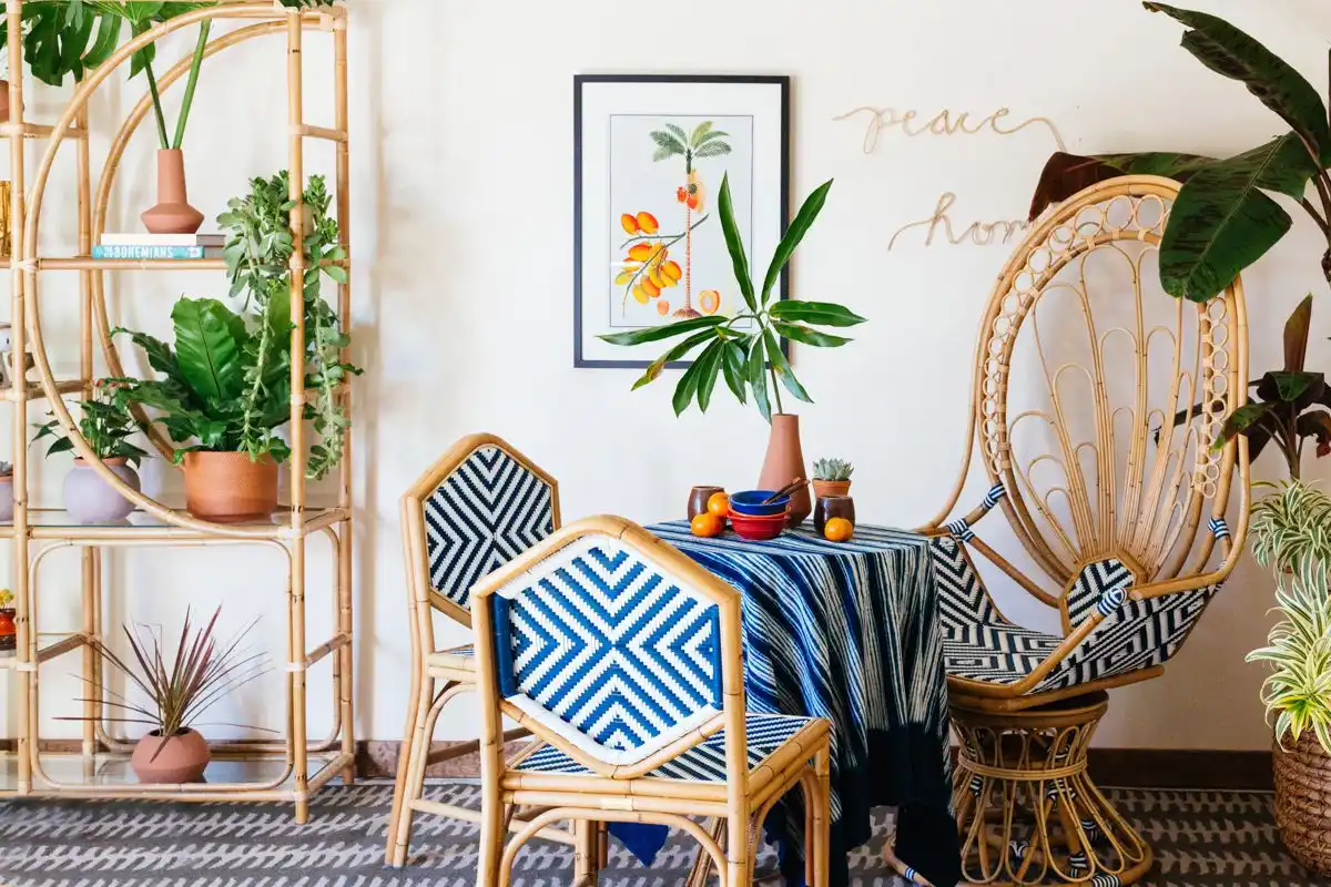 Така стилістика більше пов'язана із рослинною природою теплих країв, тропіками. Меблі повинні бути простими, не химерними. Цей стиль вимагає більшої кількості рослин у кімнаті, оскільки саме вони задають настрій. Яскраві акценти декору також зроблять свою справу.