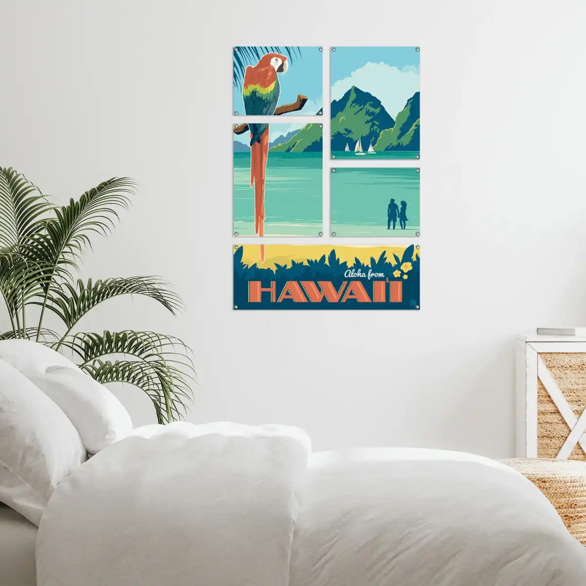 Що стосується декору стін, то це можуть бути різні дерев'яні таблички, постери, або ж цілі картини, які природно нагадують нам про теплі Гаваї.