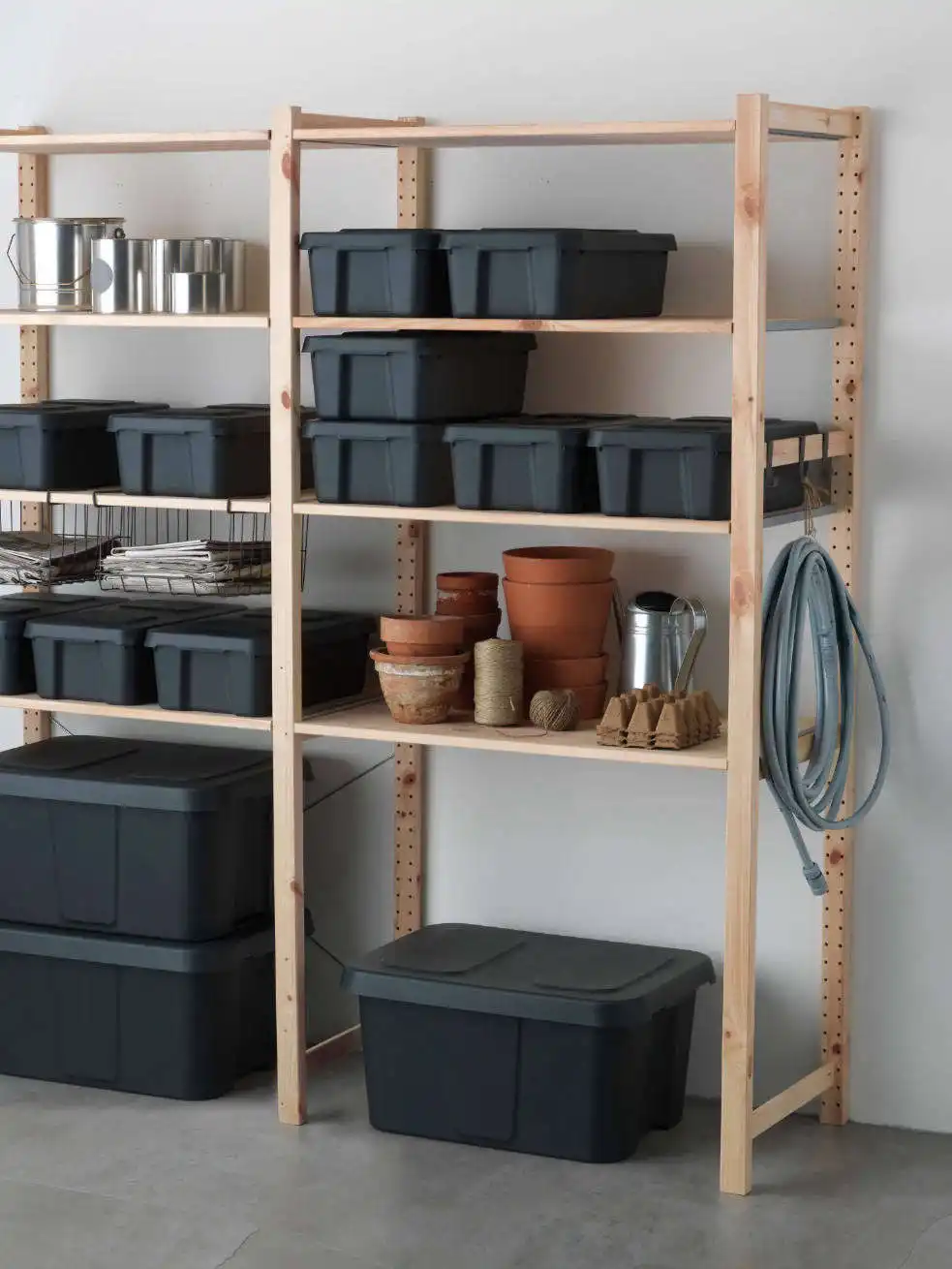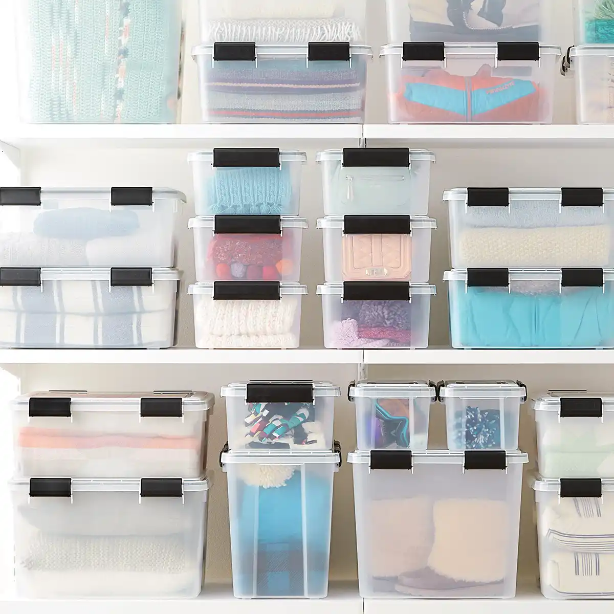Що щодо контейнерів? Вони якнайкраще допоможуть вам у розподілі речей та їх надійному зберіганні. Речі можна сортувати за частотою чи призначенням використання. Так ваші полиці не ломляться від гір речей – на них акуратно стоятимуть контейнери. І ніякого більше творчого безладдя!