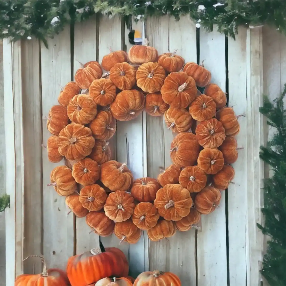 Осінні вінки це класика. Але як часто ви бачили вінки із гарбузами? Погодьтеся, виглядає дуже мило. До речі, гарбуза зовсім необов'язково мають бути справжніми — можна зібрати вінок із плюшевих гарбузів, і це стане чудовим елементом декору в дитячій кімнаті. Більше того, такий вінок ви можете використати і наступного року.