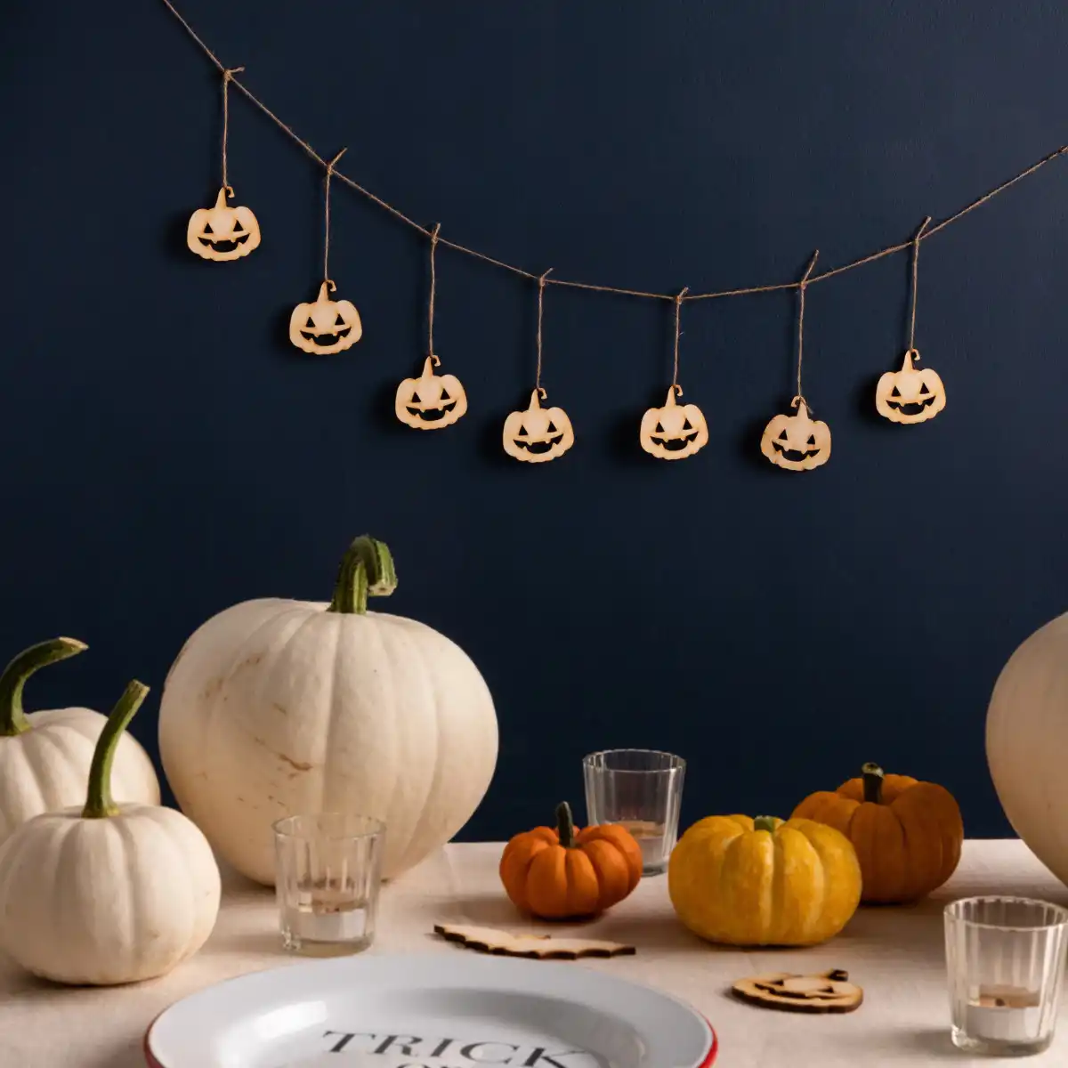 Я дуже люблю прикрашати кімнату гірляндами. Тут чудовий варіант для тих, хто економить електрику. Гарбуз, звичайно, не картопля, і з неї не отримати електрику. Але кімнату прикрасити вона може. Для гірлянди можна використовувати різні гарбузи: від паперових до повстяних.