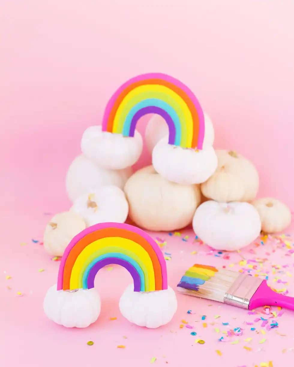 Якщо у вас у запасі не один гарбуз, то можете зібрати цілу композицію! Як бачите, з гарбуза може вийти навіть веселка, що вже казати — магія. Складіть своє гарбузове військо в композицію, що сподобалася, і милуйтеся результатом. До речі, інсталяцію, що вийшла, можна використовувати як фотозону.