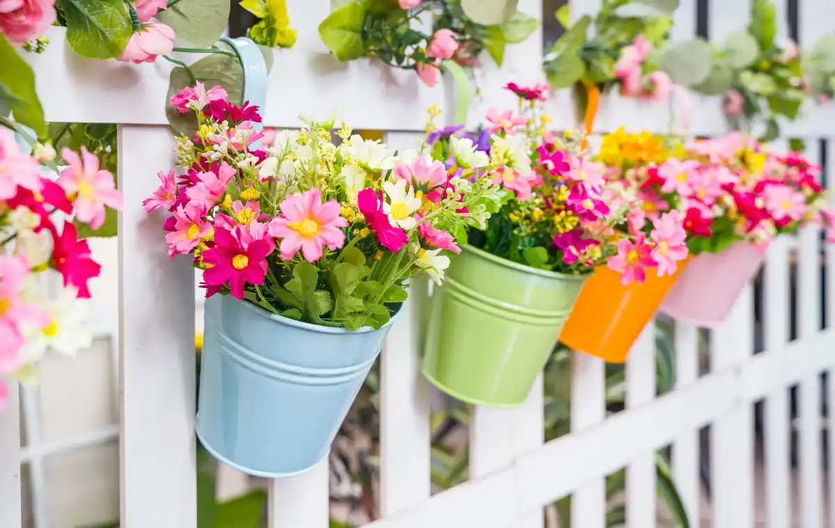 Не завжди на ділянках буває місце для великих кущів або кучерявих рослин. У цьому випадку на допомогу прийдуть кашпо. Знадобиться невелика підготовка у вигляді присвердлених рейок, але результат того вартий! У таких місцях зручно вирощувати однорічники або квіти, що погано зимують. Із закінченням сезону ви зможете перенести їх у тепле приміщення.