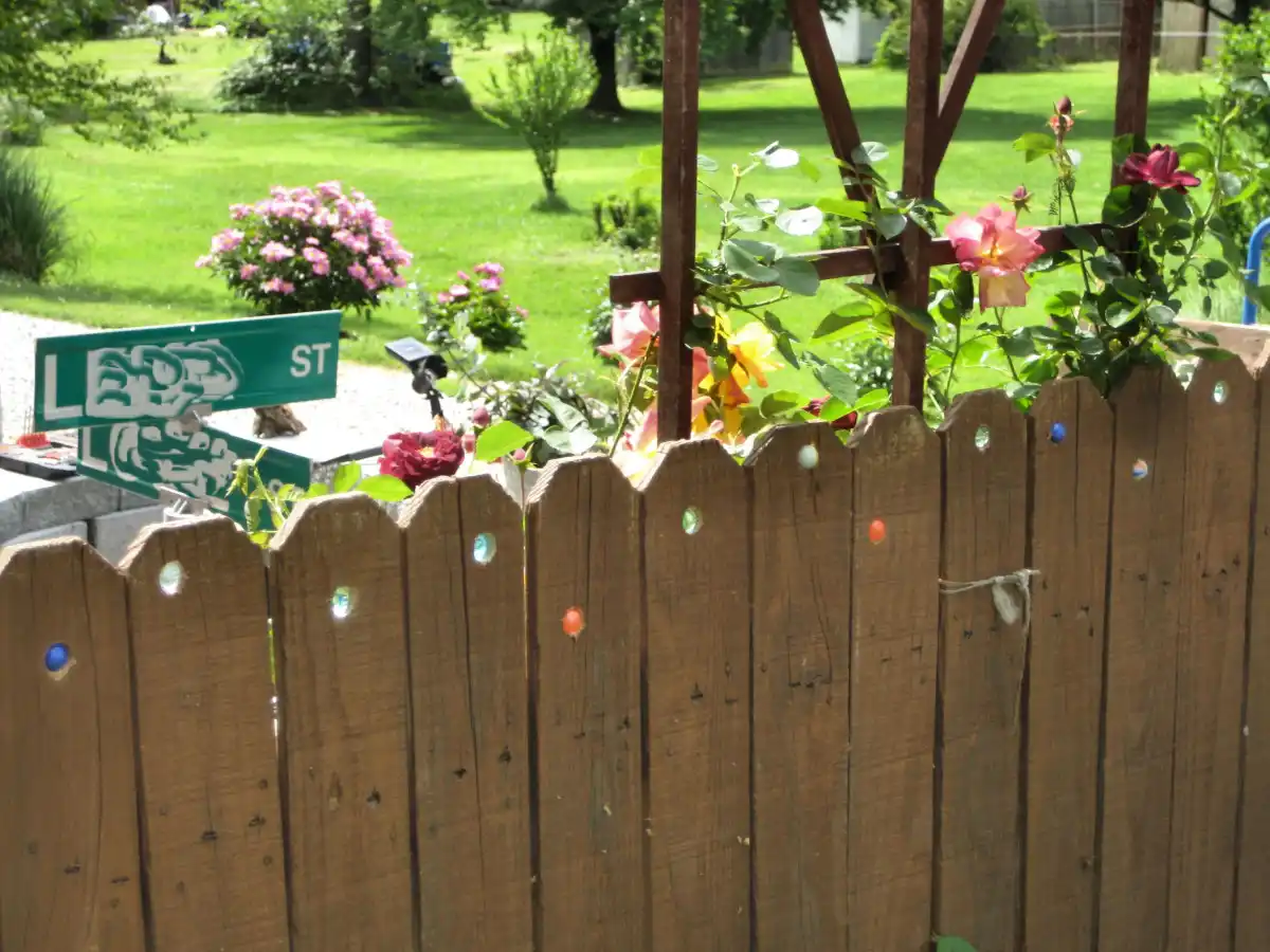 Впевнені, такого ви навіть не бачили! Купуйте кольорові скляні або пластмасові кульки, висвердліть під них отвори та вставте. Без особливих витрат у вас дизайнерський паркан, який гарно переливається на сонці. Для запопадливих любителів можна зібрати цілу мозаїку на своєму паркані.