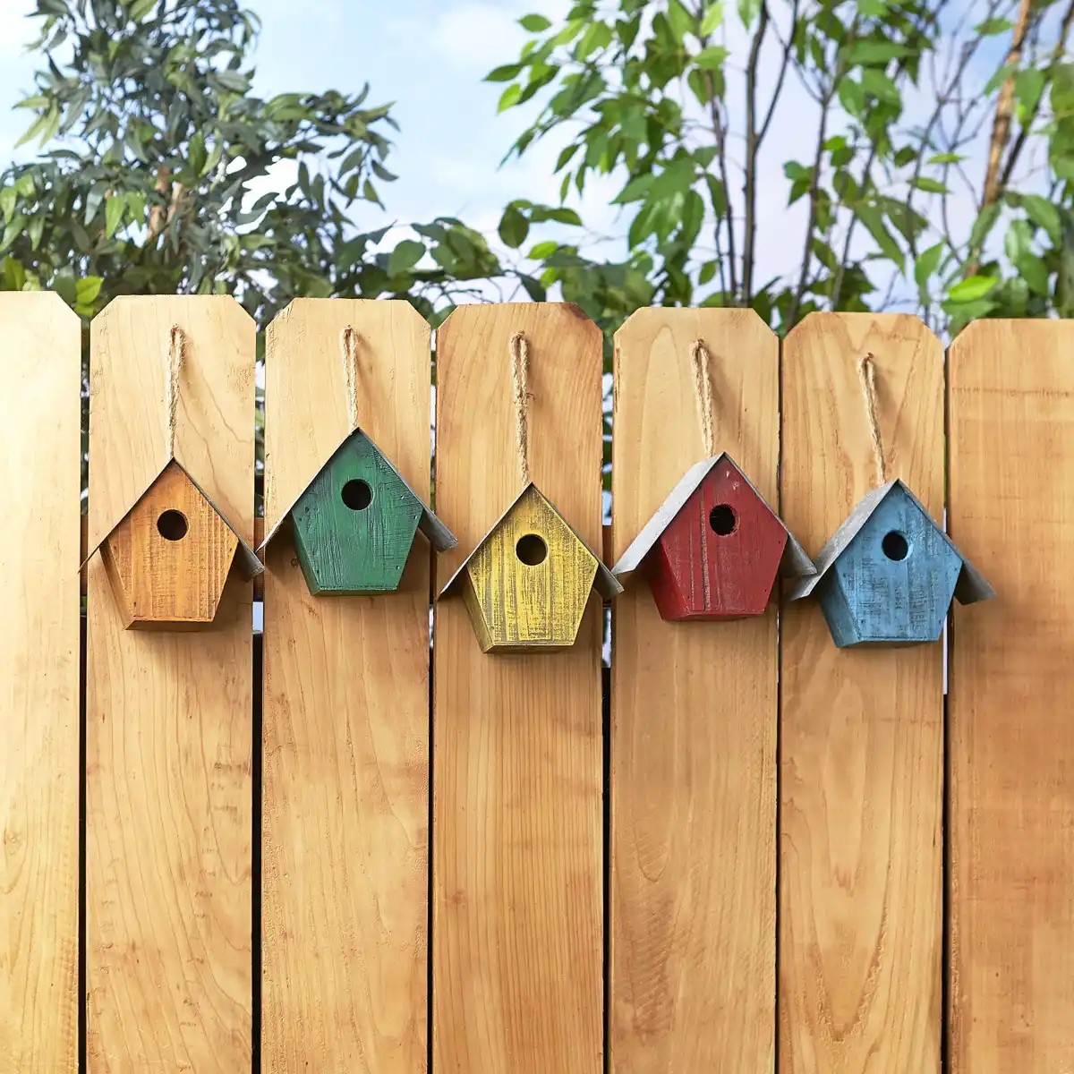 Поєднуємо приємне з корисним, ми не раз розповідали про користь птахів у саду, тож чому б не організувати їм будиночки прямо на паркані! Треба сказати, що будиночки можна будувати не тільки для птахів, а й комах, наприклад, сонечок. Яскраві шпаківні урізноманітнять нудний паркан.