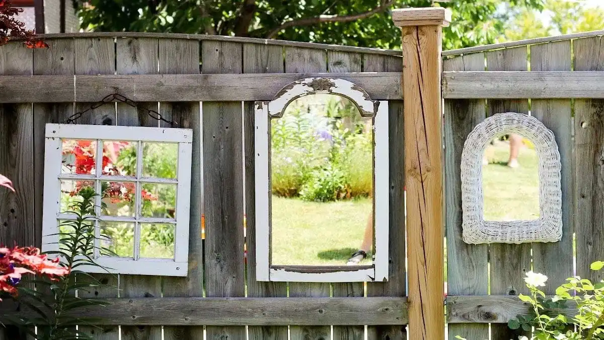 Мабуть, найдивовижніша ідея — влаштувати фальшиве вікно в паркан. Ймовірно, це займе сил і часу, проте створить унікальний акцент у вашому саду. Доповнити таку ідею можна старим посудом, статуетками чи садовим інвентарем. Якщо зайвого вікна немає, його можна замінити звичайною рамкою!