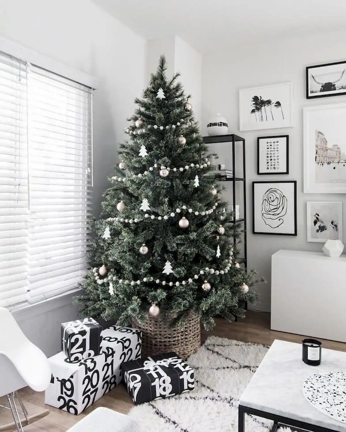 Якщо ви не фанат святкових надмірностей, вам підійде мінімалістичний декор. Це стосується і кольорів, і кількості прикрас. Можливо, це не найефектніша ялинка у світі, зате дуже стильна. Особливо сподобається шанувальникам скандинавського дизайну.