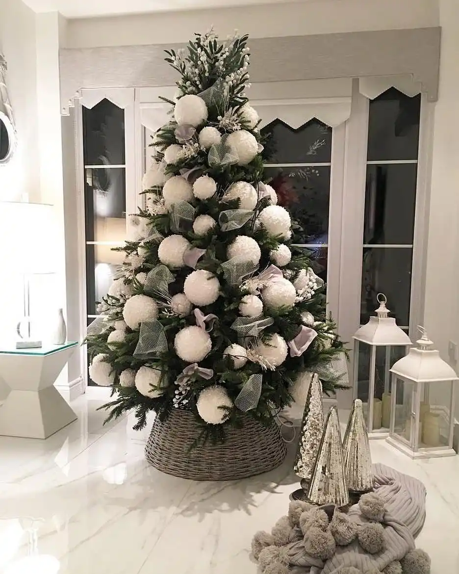 Дуже ошатно виглядає ялинка у сріблі чи золоті. При цьому не обов'язково вибирати щось одне, вони чудово поєднуються у декорі.