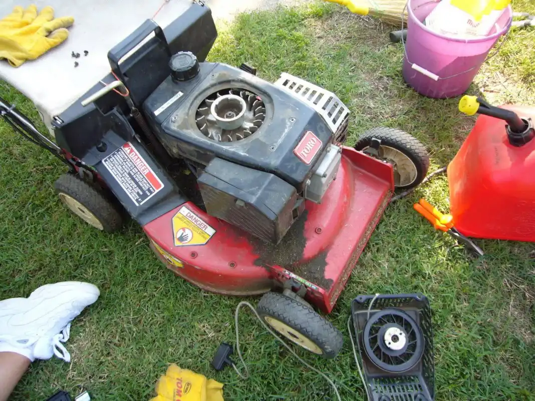 Насамперед її потрібно відключити від мережі, злити весь бензин, викрутити та просушити свічки запалювання. Перед роботою з газонокосаркою її необхідно максимально убезпечити, щоб у процесі її очищення не змогли заробити ріжучі частини та поранити вас. Далі газонокосарку потрібно повністю очистити від трави, навіть від дрібних трав, які можуть усередині засохнути або загнити і привести в окремих випадках навіть до виходу з ладу окремих елементів газонокосарки.