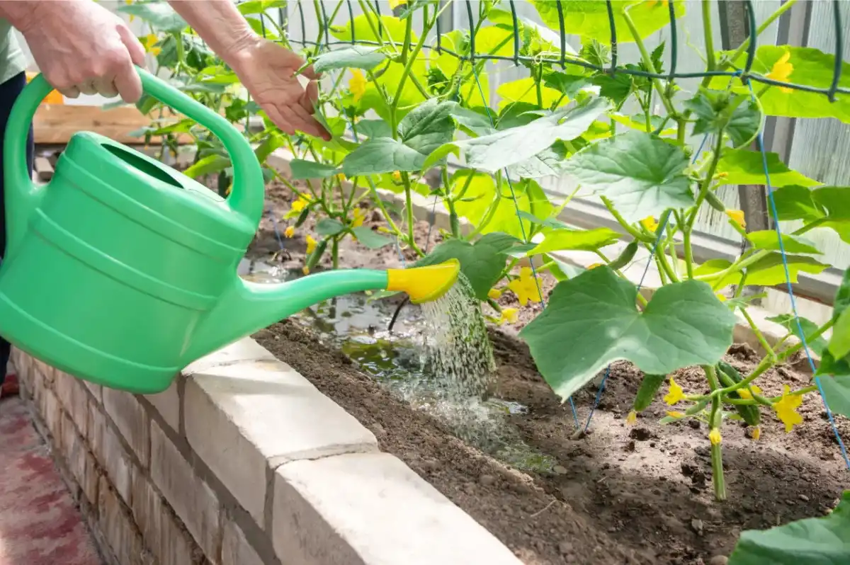 З іншого боку, недостатній полив викликає зневоднення та стрес, що так само призведе до пожовтіння листя. Огірки на 96% складаються з води, і це найвищий вміст вологи серед усіх овочів, тому їм потрібне багато рідини, щоб вижити. Коли рослинам стає занадто сухо, листя скручується, коричневіє по краях і змінює колір із зеленого на жовтий, висихає і опадає.