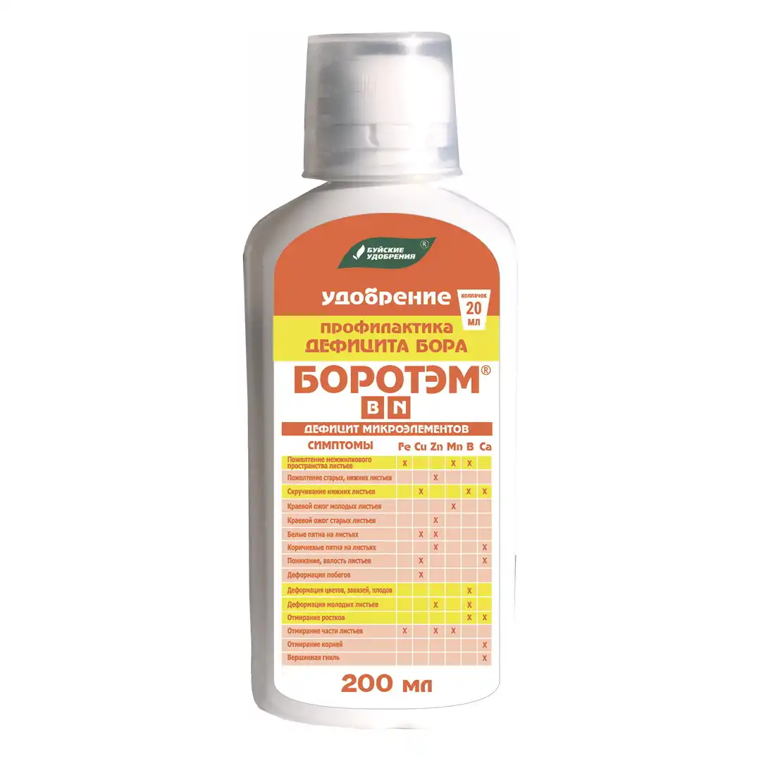 Бор вкрай необхідний нормального формування квіток, запилення і зав'язування плодів, особливо в культур, як персик і горіхи. Дефіцит бору може призвести до обсипання квіток та зав'язей, а також до деформації плодів. «Боротем» від «Буйських Добрив» є легкодоступним джерелом бору, який рекомендується застосовувати до початку цвітіння для забезпечення успішного запилення та формування зав'язей.