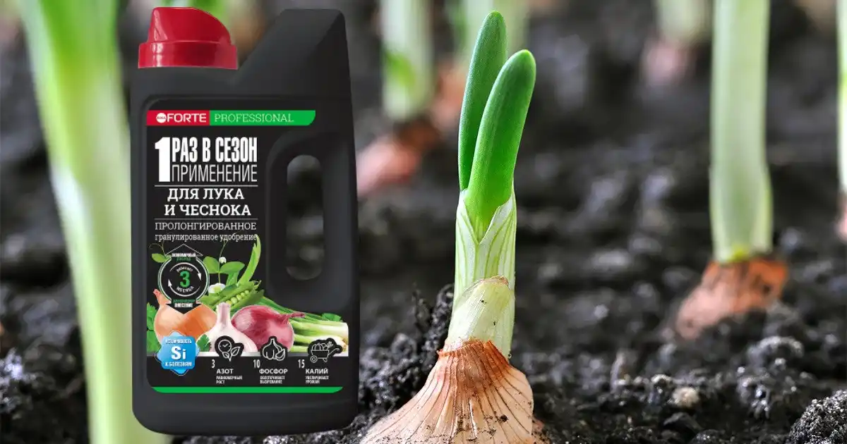 Як добрива зазвичай використовують стару органіку, що перепріла, - перегній або компост. Внести їх бажано ще з осені, але якщо ви не встигли цього зробити, просто скористайтеся добривом Кінське преміум Bona Forte з цеолітом та амінокислотами (200-400 м на квадратний метр). Тільки вносити його краще після перекопування, при боронуванні гряди. Так гранули гарантовано потраплять у коренеживаний шар грунту і забезпечать цибулю початковим харчуванням, а амінокислоти допоможуть пережити різні стресові фактори.