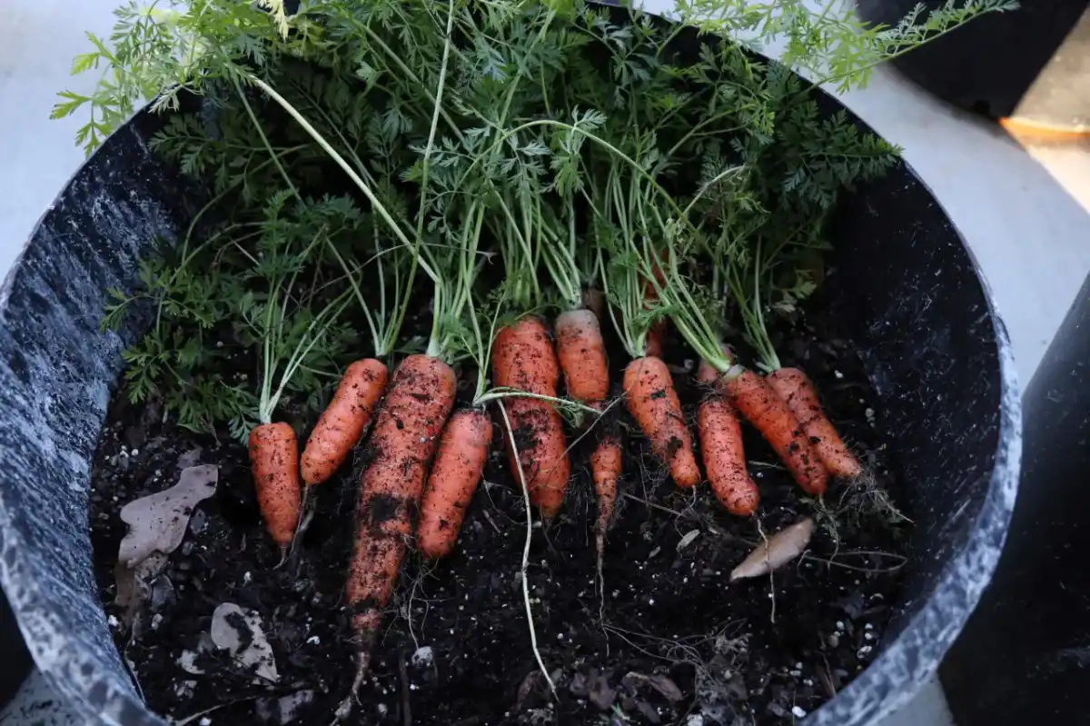 Як і редиска, морква не займає багато місця, але для гарного зростання їй потрібні глибокі ємності. Більшості сортів моркви потрібні горщики глибиною не менше 30-35 см глибиною для правильного розвитку коріння. Однак такі сорти, як «Грильяж» та «МО», можливо вирощувати у трохи нижчих контейнерах.