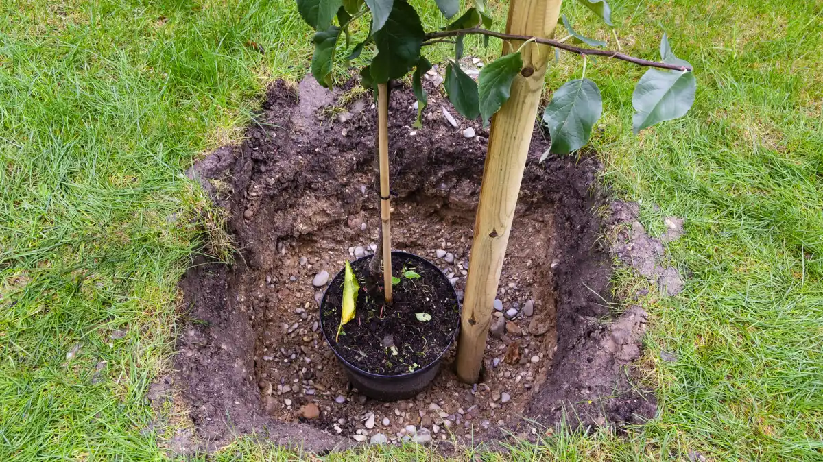 Правильна посадка яблуні вирішує проблему бідного ґрунту на десятиліття вперед. Під дерево необхідно викопати посадкову яму глибиною 1,2 м і діаметром не менше 1 м. Важливо заправити її родючим темним грунтом, що містить гній, перегній, гумус, чорнозем і внести під посадку повний комплекс добрив з мікроелементами. Також потрібно виміряти кислотність. У разі необхідності додати розкислювач (деревну золу, пушонку, доломітове борошно).