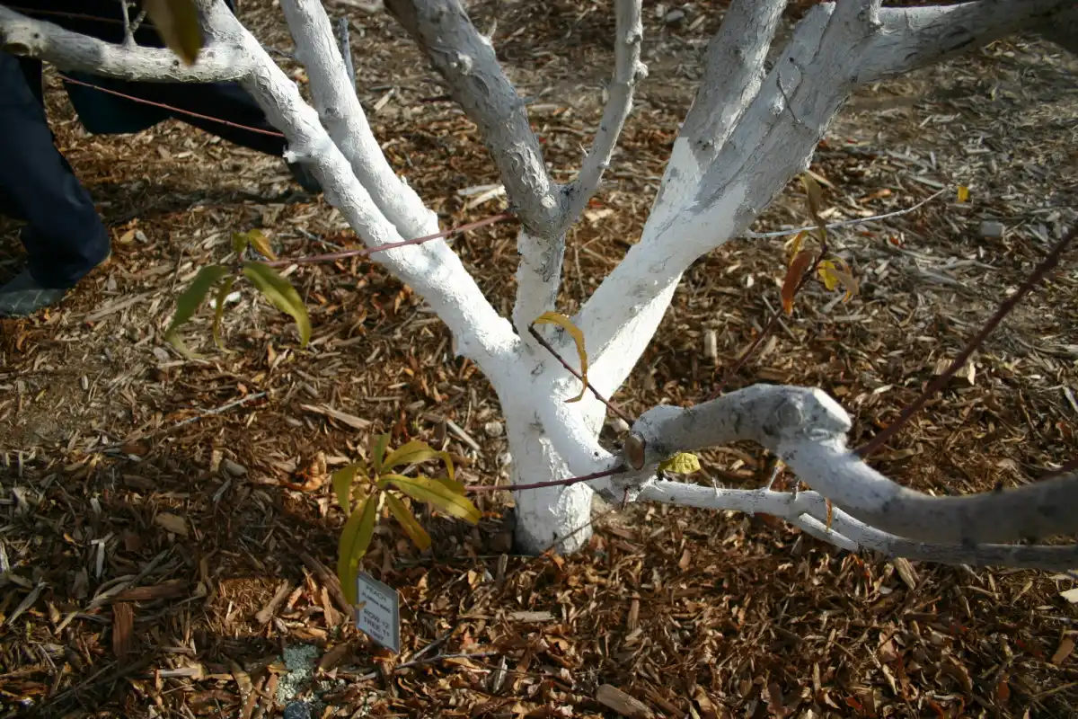 Використовуйте побілку на основі вапна або крейди з додаванням мідного купоросу. Ця суміш не тільки захистить стовбури від морозобоїн, але і знищить комах, що знаходяться на стовбурі. Ретельно промажте всі тріщини і поглиблення в корі, щоб позбутися від шкідників, що сховалися в них, і відкладених у порожнечі їх яєць.