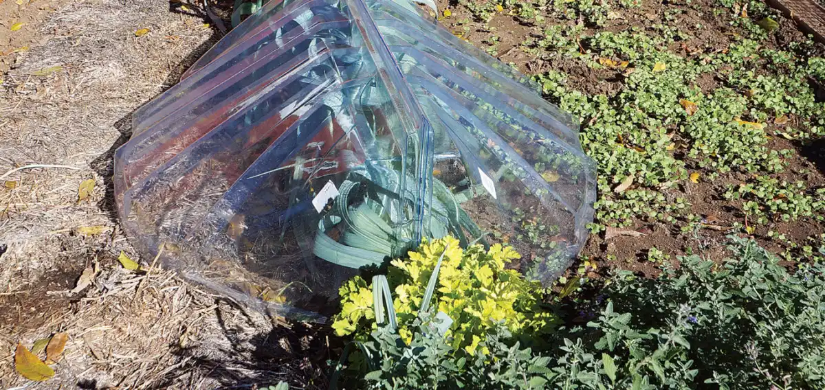 Несподіваний матеріал - віники. Знайомі купили будинок у Київському селищі і виявили в госпблоку старі запаси банних віників. Спорудили з них курені для укриття свіжопосаджених рослин, зверху накинули нетканий матеріал. Все чудово перезимувало.