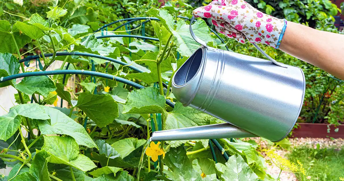 - Отриманим розчином поливаємо огірки (на кожен кущ йде приблизно 1 склянка добрива).