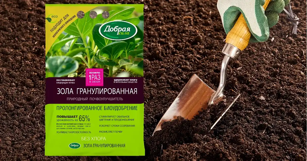 Наприклад, перед перекопуванням можна розсипати по поверхні грунту гранульовану золу Добра сила (100-200 г на 1 кв.м). Це найкращий варіант популярного народного добрива для багатьох культур, оскільки в ній немає жодних сторонніх домішок, а містяться тільки продукти спалювання рослинних решток.