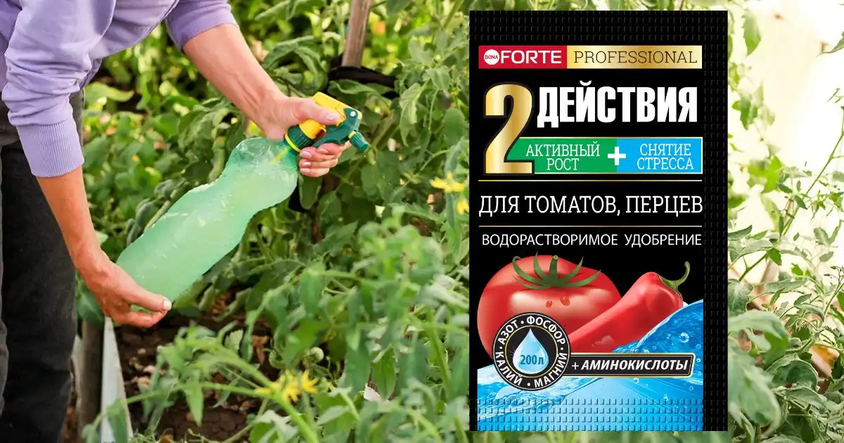 Щоб не змішувати різні добрива в потрібних пропорціях, варто просто взяти одне якісне комплексне. водорозчинне Bona Forte для томатів і перців з амінокислотами. У ньому вже є все, що потрібно пасльоновим в оптимальному співвідношенні, а крім того, амінокислоти — потужний «антидепресант».