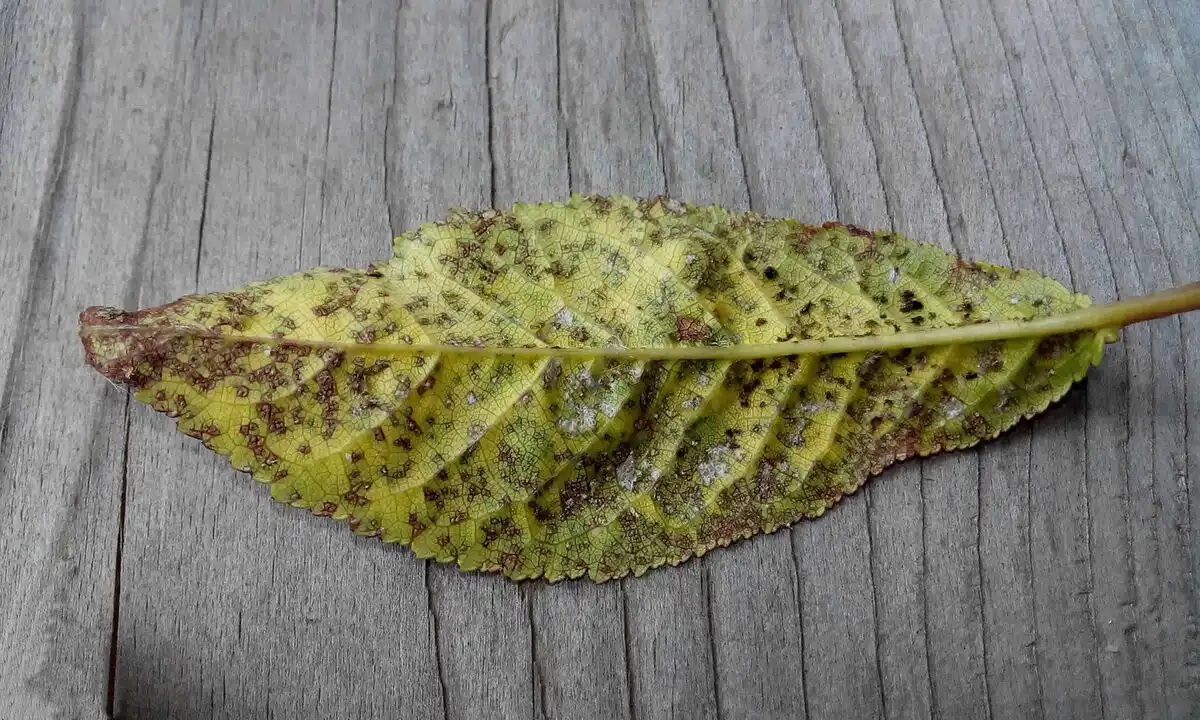 Іржа на вишневих деревах - це грибна інфекція, що викликається патогеном Tranzschelia discolor. Він провокує передчасний листопад, що послаблює дерево в цілому і негативно впливає на врожайність. Ранні ознаки з'являються на вітках у весняний час. Ви помітите здуття або довгі тріщини на гілках і корі однорічного приросту.