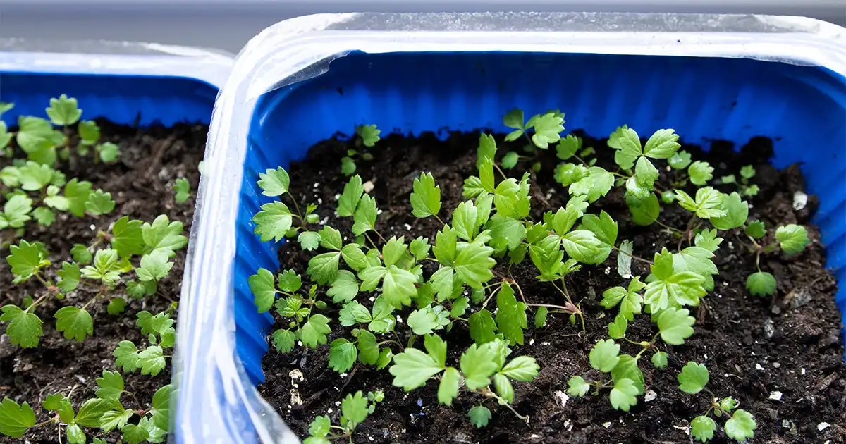 Можна посіяти насіння і отримати спочатку розсаду полуниці, або відразу придбати готові саджанці в магазині або розпліднику. Проблем буде ще менше, якщо такі сорти ви вирощуєте на грядках, або вони є у ваших знайомих. Немає нічого простішого, ніж узяти з готових кущів кілька вусів з розетками і вкоренити їх вдома в горщиках або ящиках.