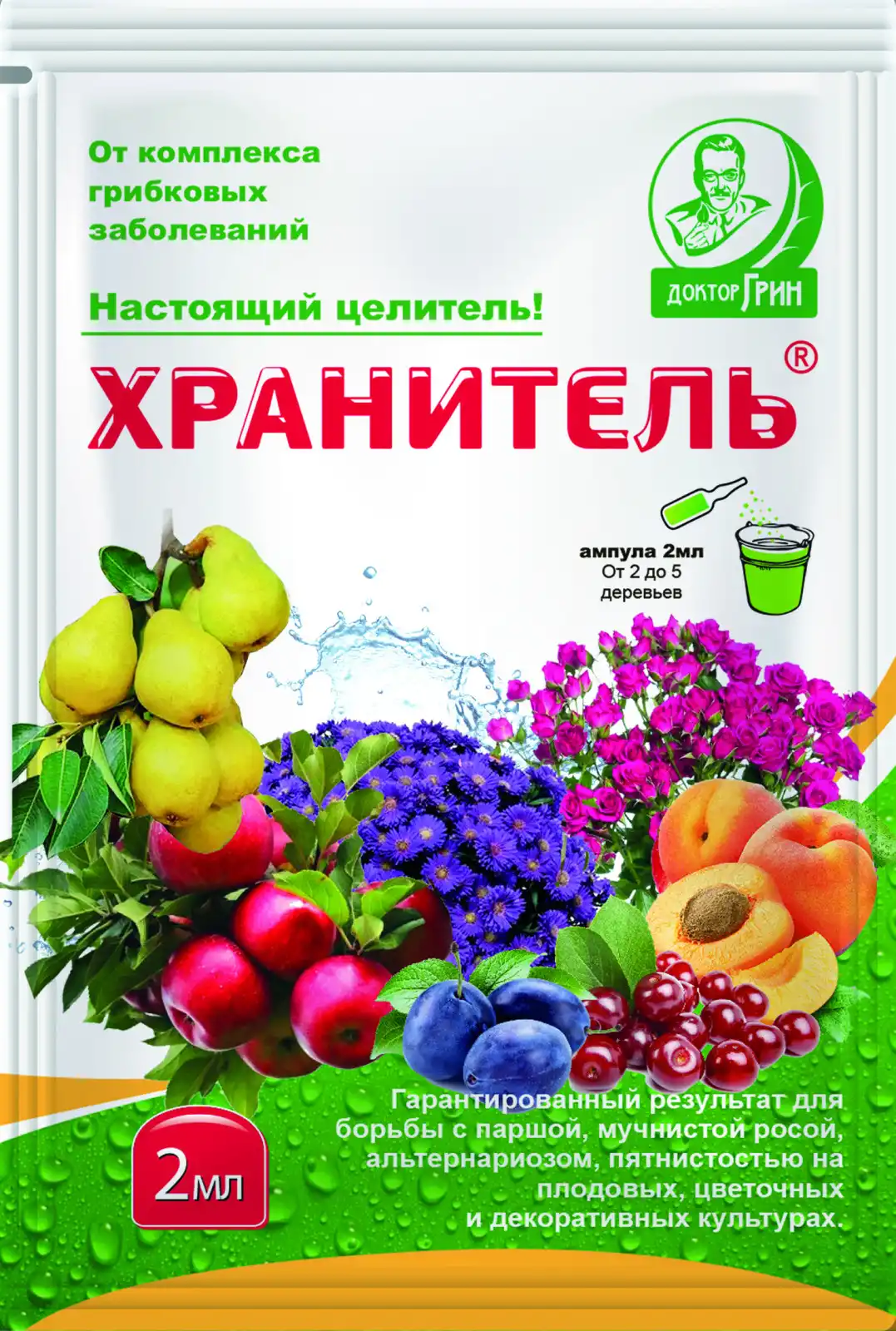 Засіб «Зберігач» призначено для профілактики та лікування більшості грибних захворювань плодових та декоративних культур – альтернаріозу, парші, борошнистої роси, сірої гнилі, різних плямистостей. Діючі речовини обох препаратів допускають приготування бакової суміші, яка посилить захисний ефект.