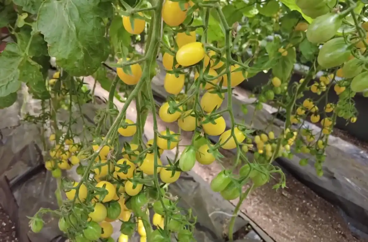 Жовті коктейльні плоди на кущах зібрані у прості або складні довгі кисті по 15-30 штук. У біологічній стиглості довго не обсипаються і не тріскаються. Форма округло-подовжена або циліндрична, маса кожного плоду 15-20 г. Шкірка гладка, з приємним блискучим глянцевим. М'якуш соковитий, виключно солодкий з добре помітним фруктовим присмаком. Плоди чудові у свіжому вигляді, як джерело цінних вітамінів та антиоксидантів, а також підходять для прикраси страв та цільноплідного консервування.