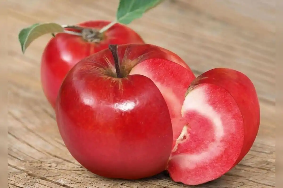 Рожевий колір у яблучній м'якоті зустрічається не так вже й рідко: він може бути присутнім у вигляді рожевих прожилок, наприклад, у сортів «Аромат Уктуса», «Брянське Червоне Червоне», «Червона Гірка». Може бути під шкіркою, як у сорту «Вільямс Прайд». М'якуш може бути майже повністю рожевий: ніжно-рожева у сорту «Весялина» і насичено-рожева у яблук сортів «Байя Маріса», «Редлав Одіссо», «Ред Кетті».