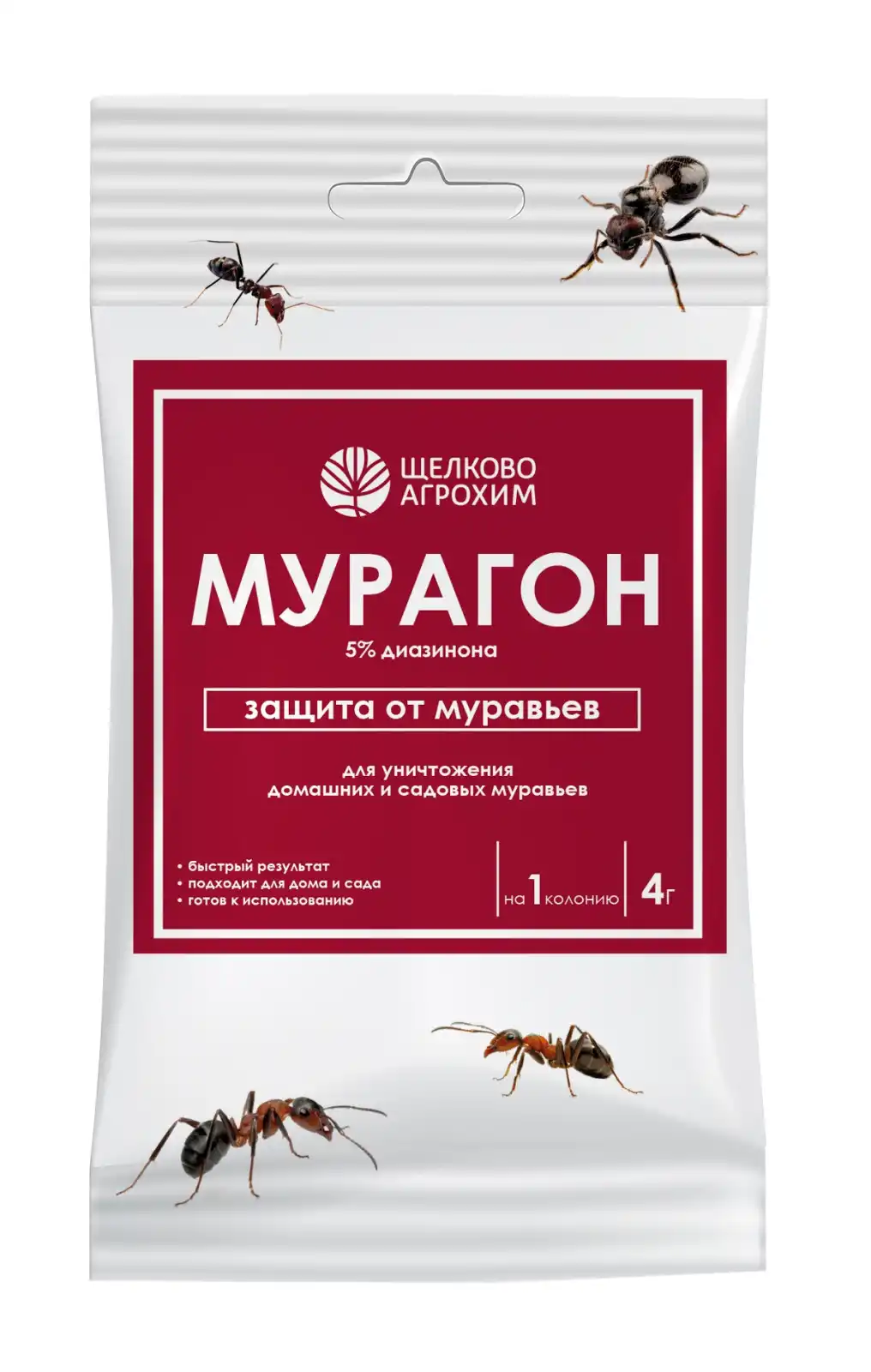 Але якщо в саду ще можна подискутувати, то вдома відповідь однозначна: у приміщенні мураха – завжди ворог. Дрібного та неприємного домашнього шкідника допоможе перемогти «Щолківський» інсектицид контактно-кишкової дії Мурагон, Г. Він спеціально створений для захисту приміщень від широкого спектру шкідливих мурах. Речовини у готовій до застосування приманці у вигляді гранул перешкоджають діяльності ферментів, які відповідають за передачу нервових імпульсів.