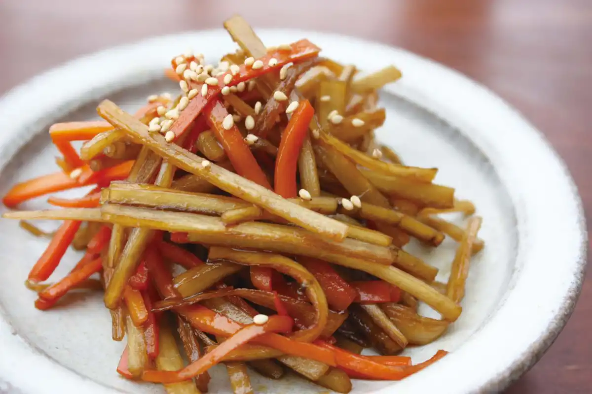 Як сортовий, і дикий лопух використовують приблизно однаково. Збирають урожай в перший рік, старе і дуже довге коріння має тенденцію здерев'янювати в серцевині. Молодий корінь лопуха дуже хрумкий і має солодкий, м'який і трохи гоструватий смак з невеликою різкістю, яку можна зменшити, замочуючи подрібнене коріння у воді на п'ять-десять хвилин. Корінь зазвичай очищають, нарізають тонкими скибочками та додають у жарку. Його також маринують як дайкон.