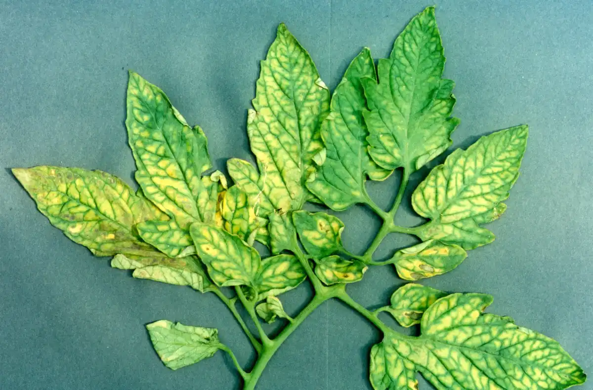 Нестача деяких мікроелементів може викликати пожовтіння листя (хлороз). Коли рослині томату не вистачає магнію, заліза, сірки чи цинку, воно не може виробляти хлорофіл. Це призводить до того, що листя жовтіє, а жилки залишаються яскраво-зеленими.