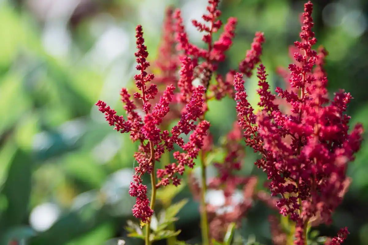Астильба має ефектні «пір'я» виразних суцвіть і різьблене листя. Вона ідеально підходить для вирощування в тіні, де її пухнасті квіти додають вертикальні акценти та колір.