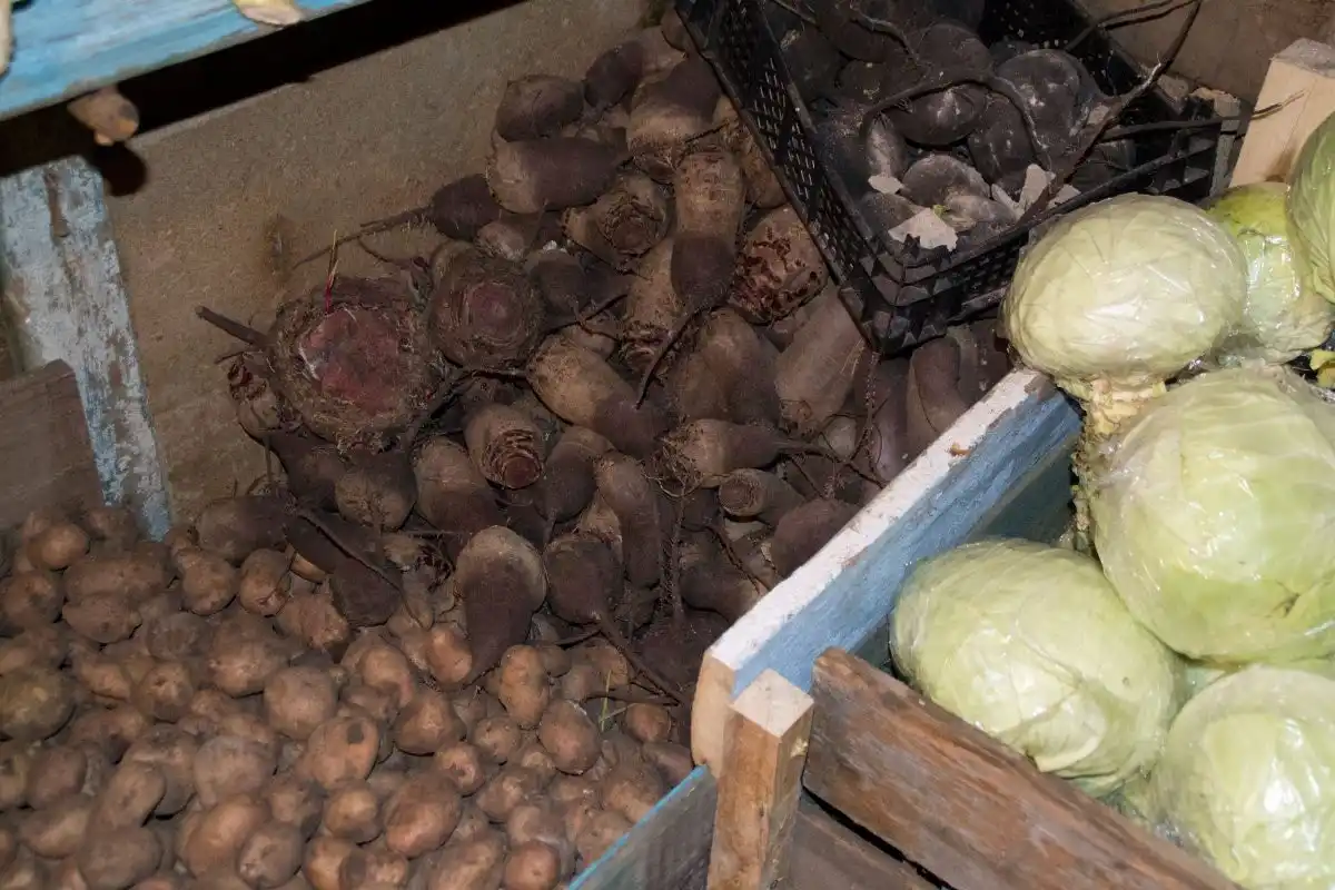 яХолодильник, закопаний у землю, можна використовувати для зберігання овочів, які потребують холодних і вологих або холодних і сухих умовЗалишити овочі на грядкахнаскільки це можливо. Поки земля не промерзне, ви можете зберігати такі культури, як буряк, морква, ріпа, картопля та редис прямо на грядці. Для цього накрийте їх великою кількістю сіна чи соломи. Потім їх можна копати при необхідності або доти, доки за прогнозом не буде серйозних заморозків. Однак при такому варіанті зберігання овочі можуть постраждати від мишей.