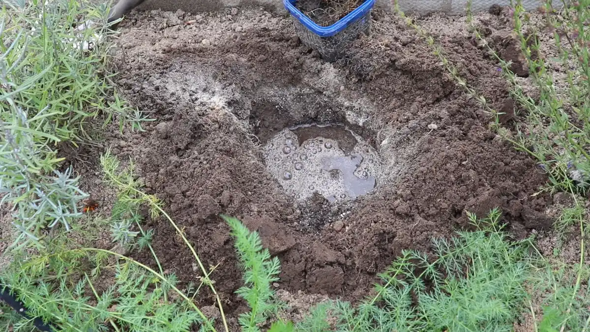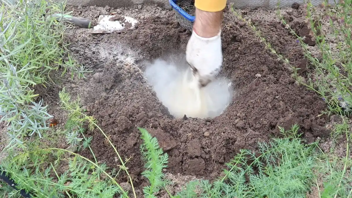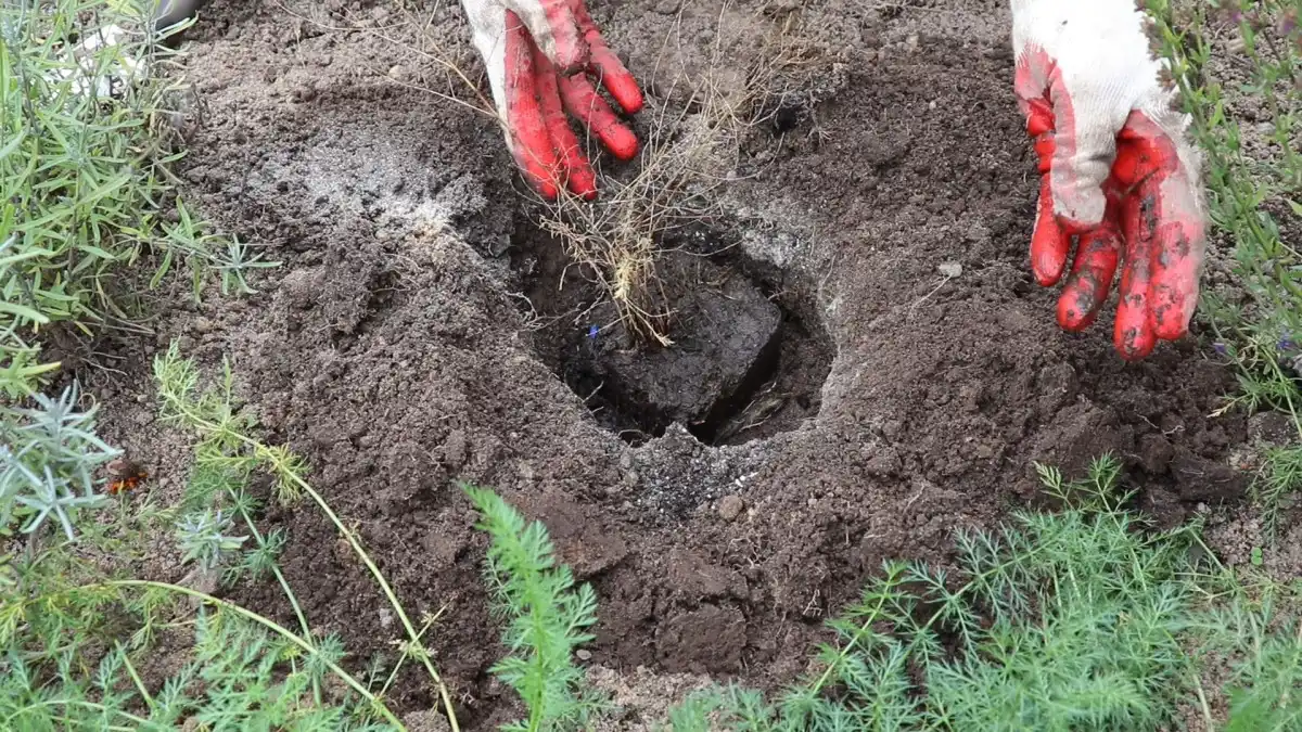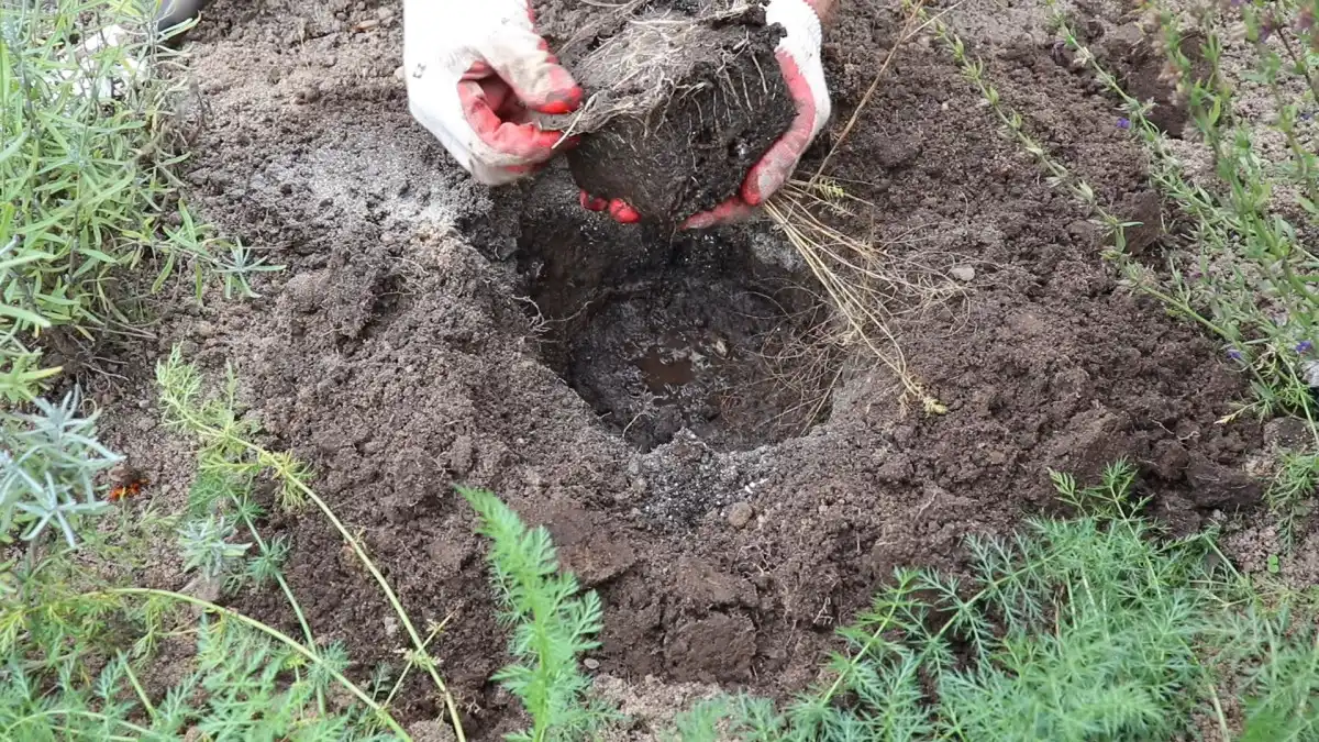 Усі компоненти потрібно ретельно перемішати та пролити водою. Після того, як волога піде, приступаємо до посадки. Для цього витягаємо саджанець з контейнера і встановлюємо в яму разом із кореневою грудкою. Не переживайте, якщо пагони саджанця восени пожовтіли – це нормальне явище для трав'янистих рослин у цей час року. Потрібно просто зрізати їх до рівня ґрунту. При осінній посадці також можна рослину трохи заглибити (на 2-3 см), а ось навесні чи влітку робити цього не варто.