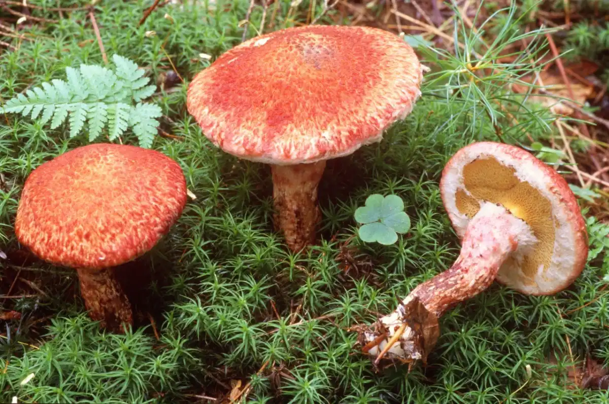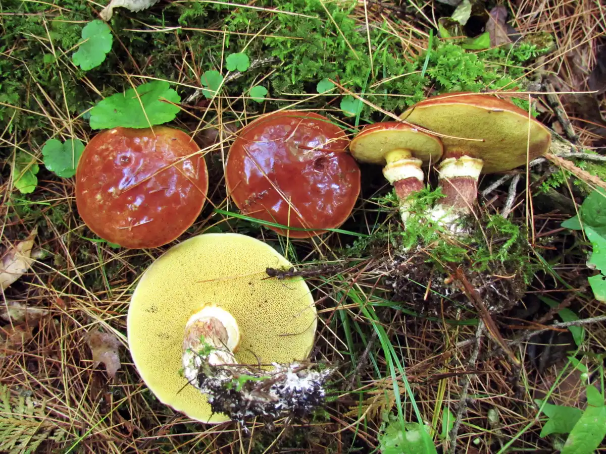 Родючі ґрунти, а іноді – мохові ділянки, облюбували цілі колонії маслянка розфарбованого (Suillus spraguei), м'якоть якого на зрізі червоніє і часто набуває червоно-коричневого відтінку. Молодий капелюшок має червоне забарвлення з різними відтінками, зміни забарвлення може свідчити про зараження комахами і в міру дозрівання. Її діаметр може досягати 18 см, а відтінок залежить від погоди.