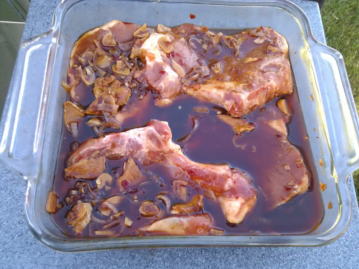 Дуже творчий процес. Присутність цукру в маринаді дозволяє отримати гарну рум'яну карамелізовану скоринку, що зберігає соковитість м'яса.