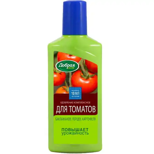 Серед комплексних добрив ми рекомендуємо Томати-Перець-Баклажани Добра сила. Крім основних елементів, до нього входять хелати дуже важливих для помідорів кальцію, магнію, бору, марганцю, цинку, молібдену та титану, а також кремній. І все це багатство укладено в гранули з цеолітом, які за принципом дії подібні до краплинного зрошення – максимум ефекту при мінімумі витрат.