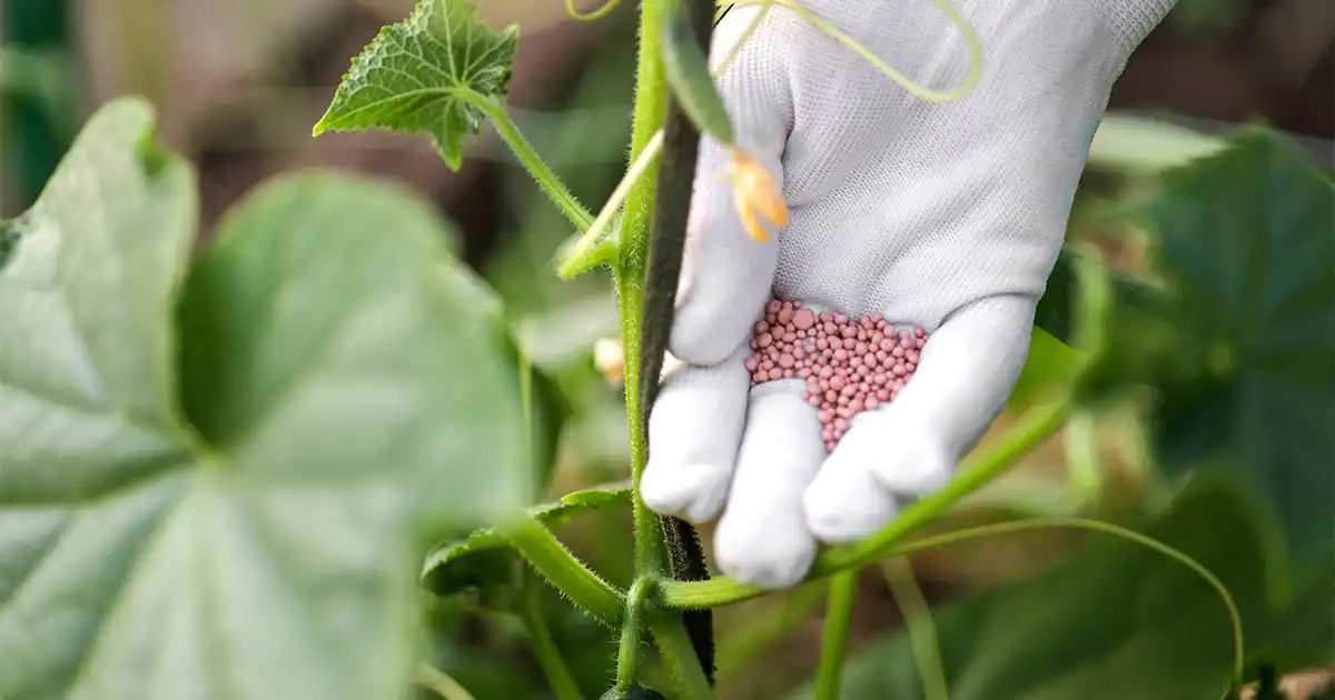 Тепер розберемося з поживними речовинами. Азот, попри усталену думку, це не основний елемент для огірків, хоч і дуже важливий. Вносити його у відносно великих обсягах можна тільки до початку цвітіння, а потім підживлення повинні бути дуже помірними. Надлишок азоту суттєво відсуває терміни цвітіння та плодоношення, погіршує смакові якості та лежкість зеленців, а також сприяє накопиченню нітратів у продукції. Крім того, він може перешкоджати засвоєнню найважливішого для огірків елементу – калію, якого культура поглинає більше за інших.