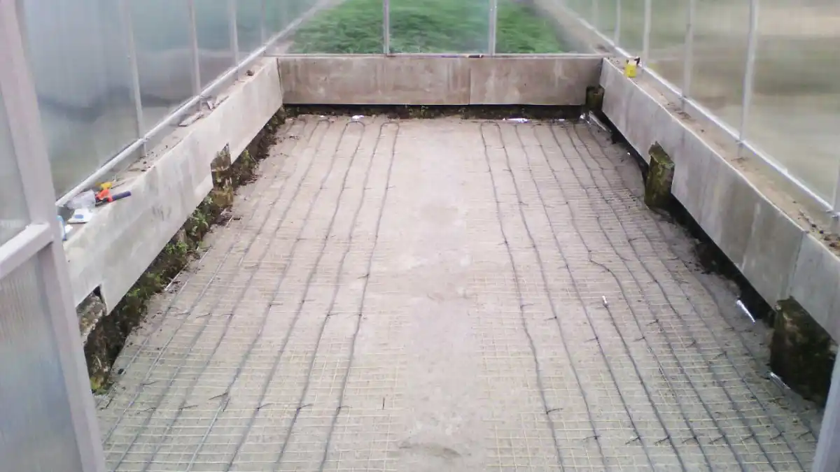 Електричний кабель, що гріє. У продажу є спеціальні системи обігріву ґрунту, які потрібно заглибити у землю приблизно на 40 сантиметрів. Для початку вистеліть дно ландшафтною тканиною або іншим тканим матеріалом та насипте шар піску завтовшки близько 5 сантиметрів. Далі на пісок укладається арматурна сітка, на якій розташовують кабель.
